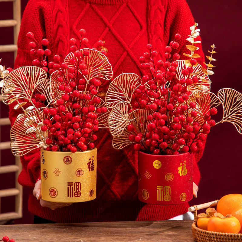 Фучжу новогодние украшения украшения весенний фестиваль красные фрукты и деревья.