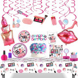 Спа-макияж, принадлежности для дня рождения, одноразовая посуда для макияжа, тарелки, чашки, салфетки, воздушные шары, набор для украшения вечеринки для девочек