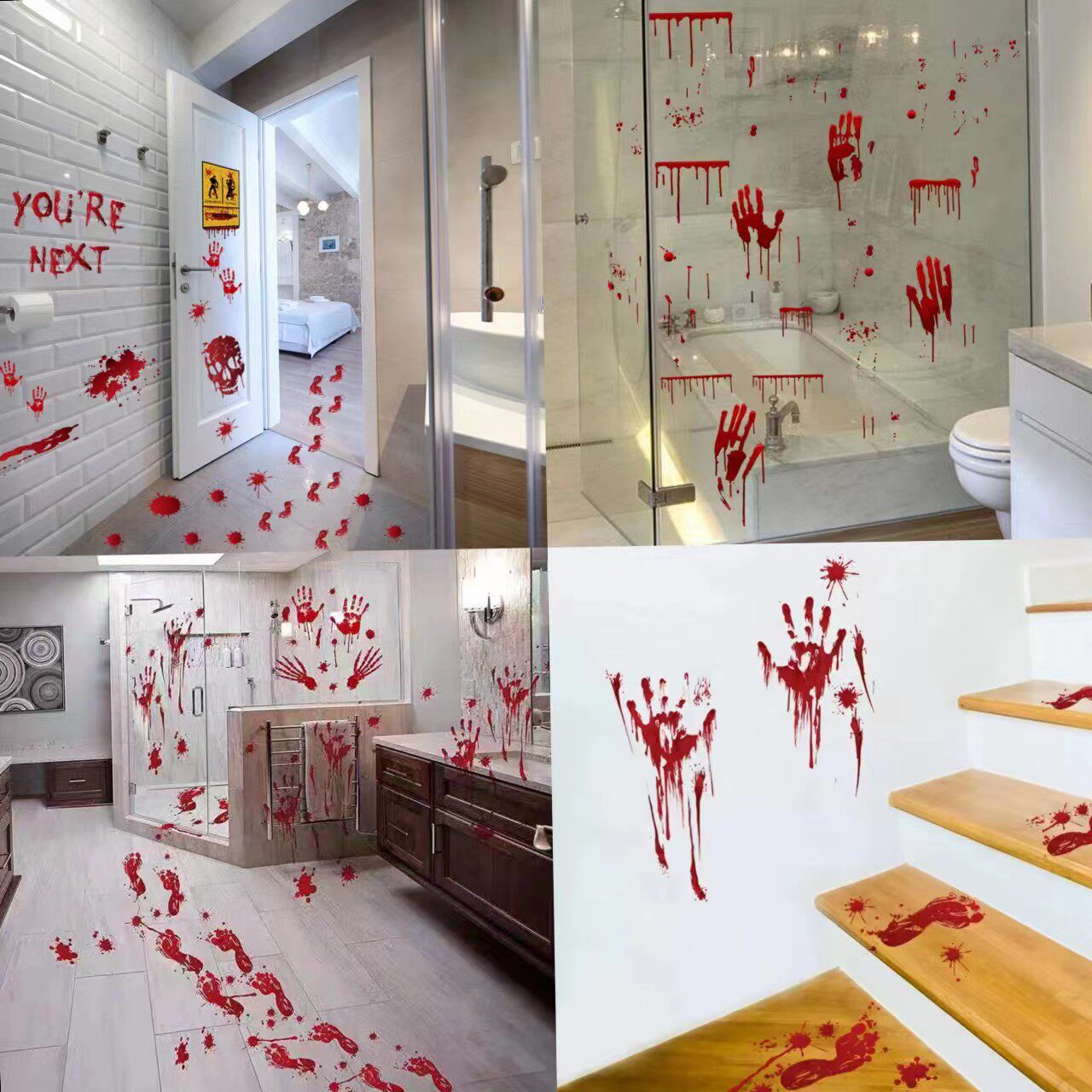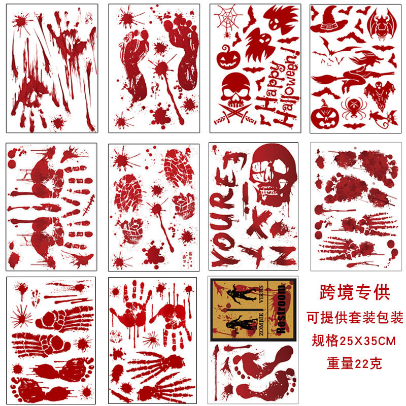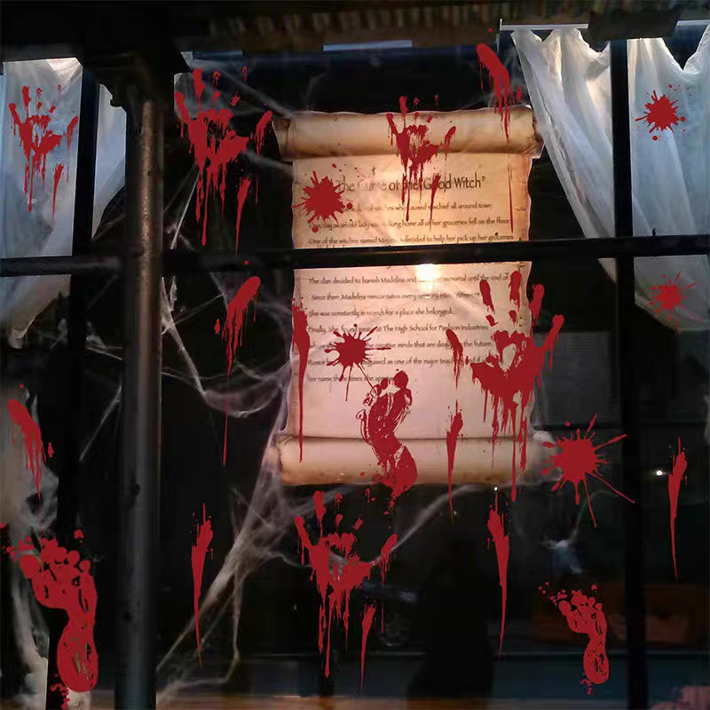 Наклейка, отпечаток рук, отпечатки рук и ног, стеклянные наклейки, xэллоуин