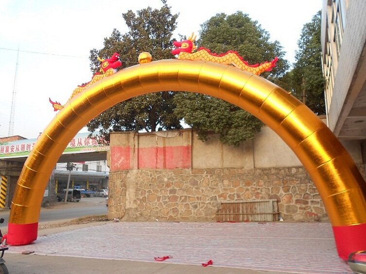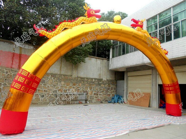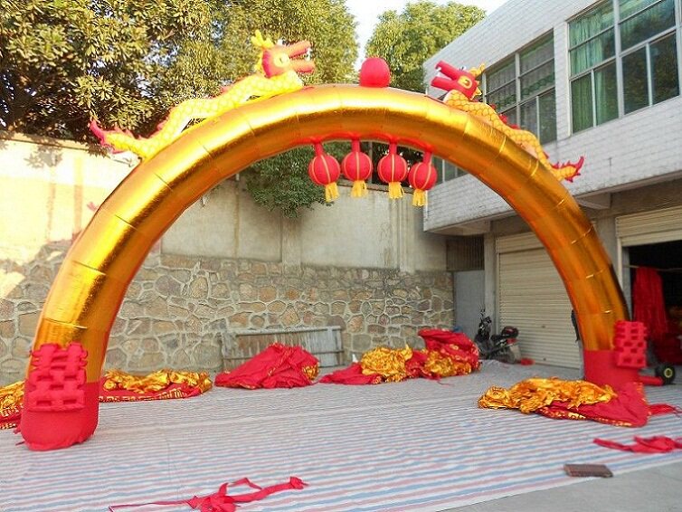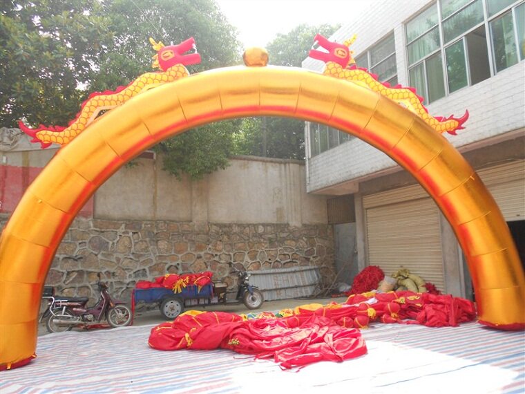 12.10.15.18.20 метров золотистого цвета двойной дракон арка Шуанлонг надувная арка открытие рекламы настройка газовой формы настройка