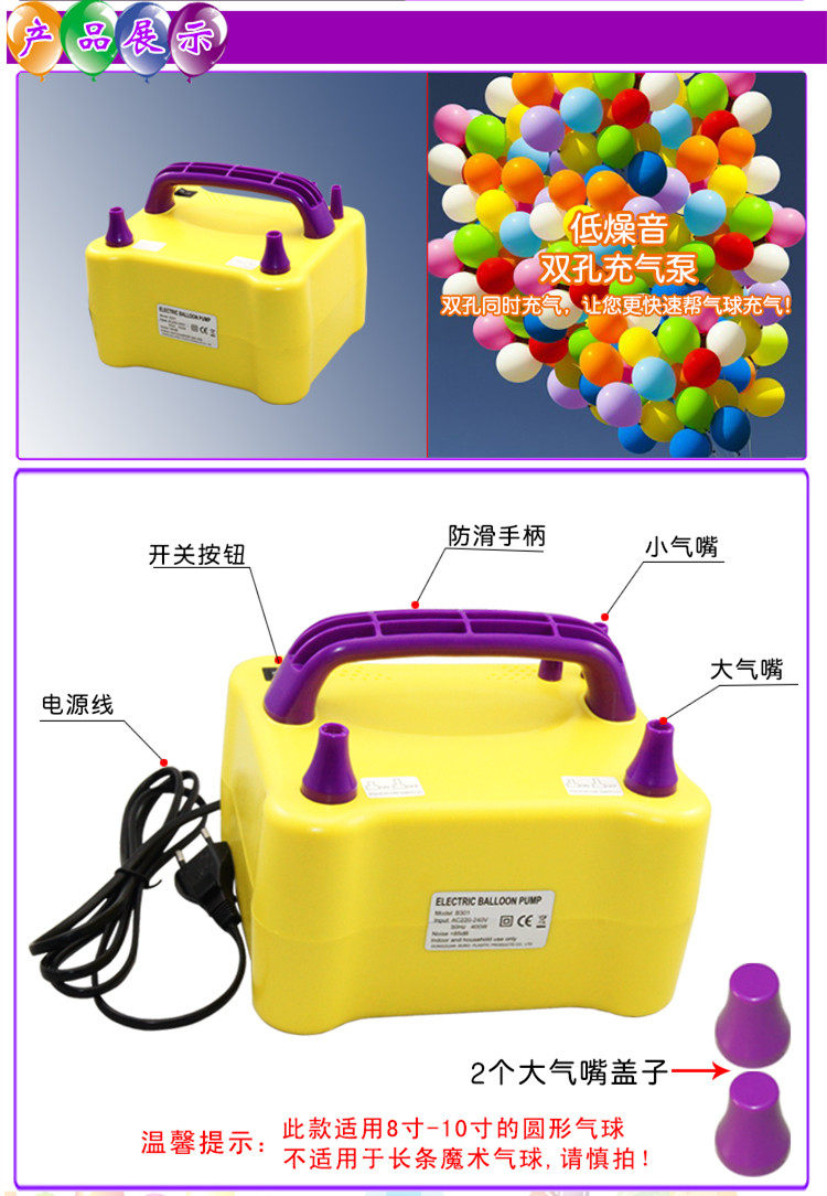 1. Этот воздушный насос подходит для обычных воздушных шаров для рекламных воздушных шаров, спиральных воздушных шаров и свадебных украшений.Он не подходит для волшебного воздушного шара (то есть длинного воздушного шара) и водородного воздушного шара.
