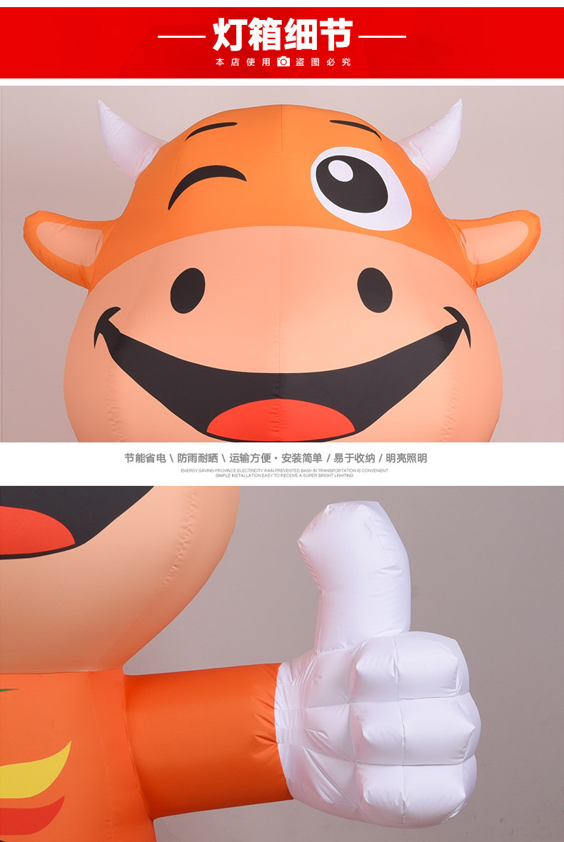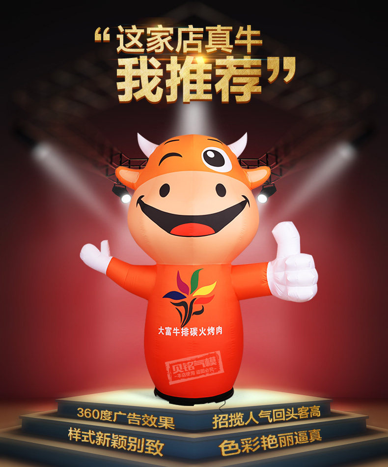 2,5 метра полная струйка творческий мультипликационные карикатуры Зодиак, выпущенный говяжий кролик, модель газовой модели, модель барбекю Bull Shop Рекламная рекламная ящик для света