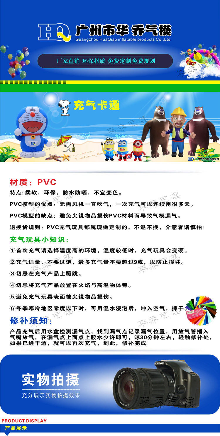Новый продукт надувной модель Panda Air Model надувные из мультипликационной индивидуальной модели ПВХ модель газа кунг -ку -кунг -фу Панда Дораемон