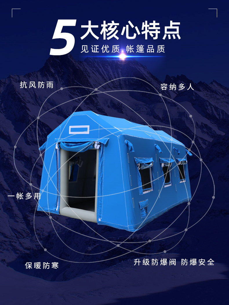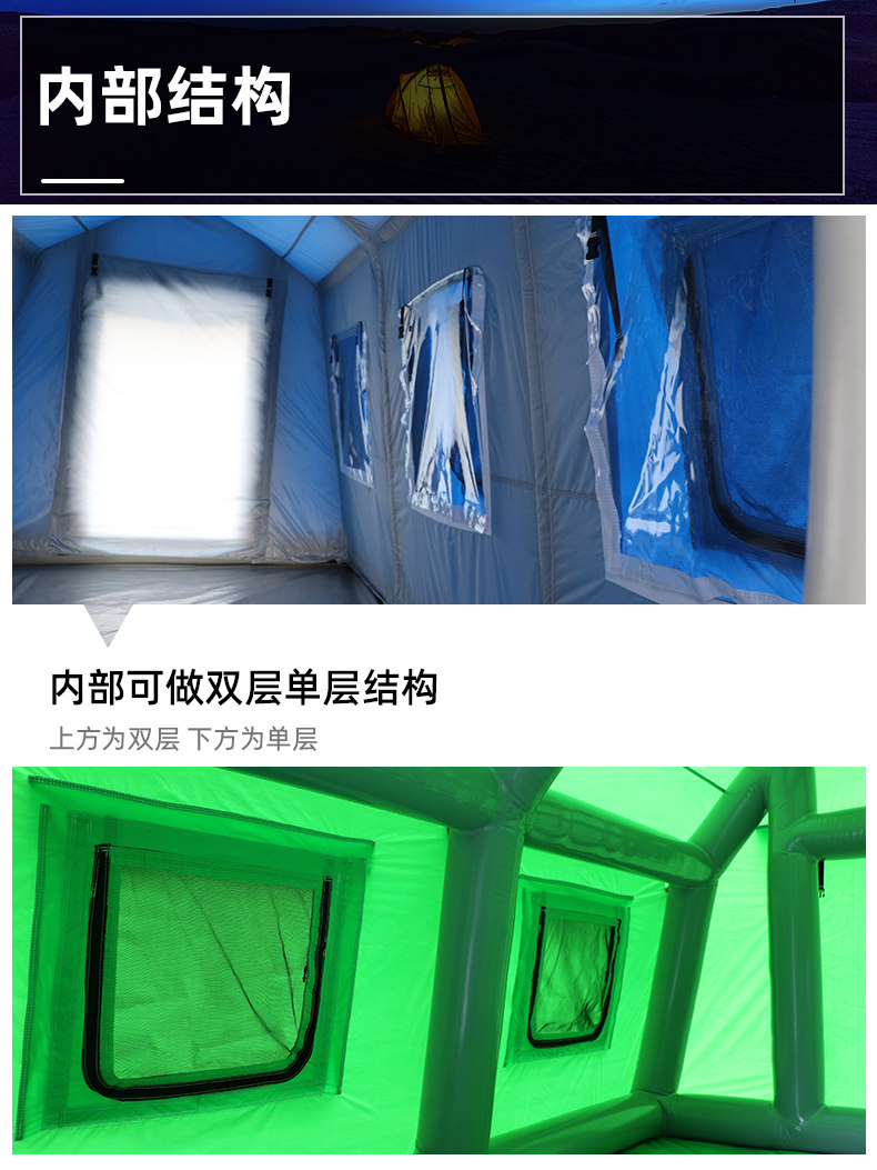 Военная промышленность утолщена крупноклассная надувная палатка на открытом воздухе.