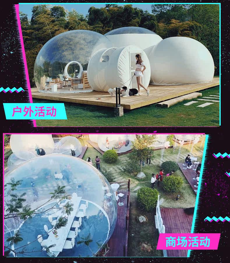 Надувные прозрачные чистые красные пузырьковые палатки палатка на открытом воздухе.