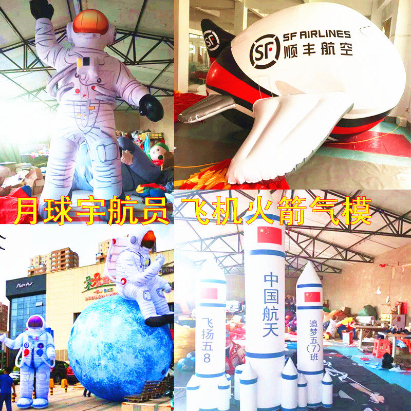 Надувной мультяшный космонавт, космический космический корабль, луна, самолет