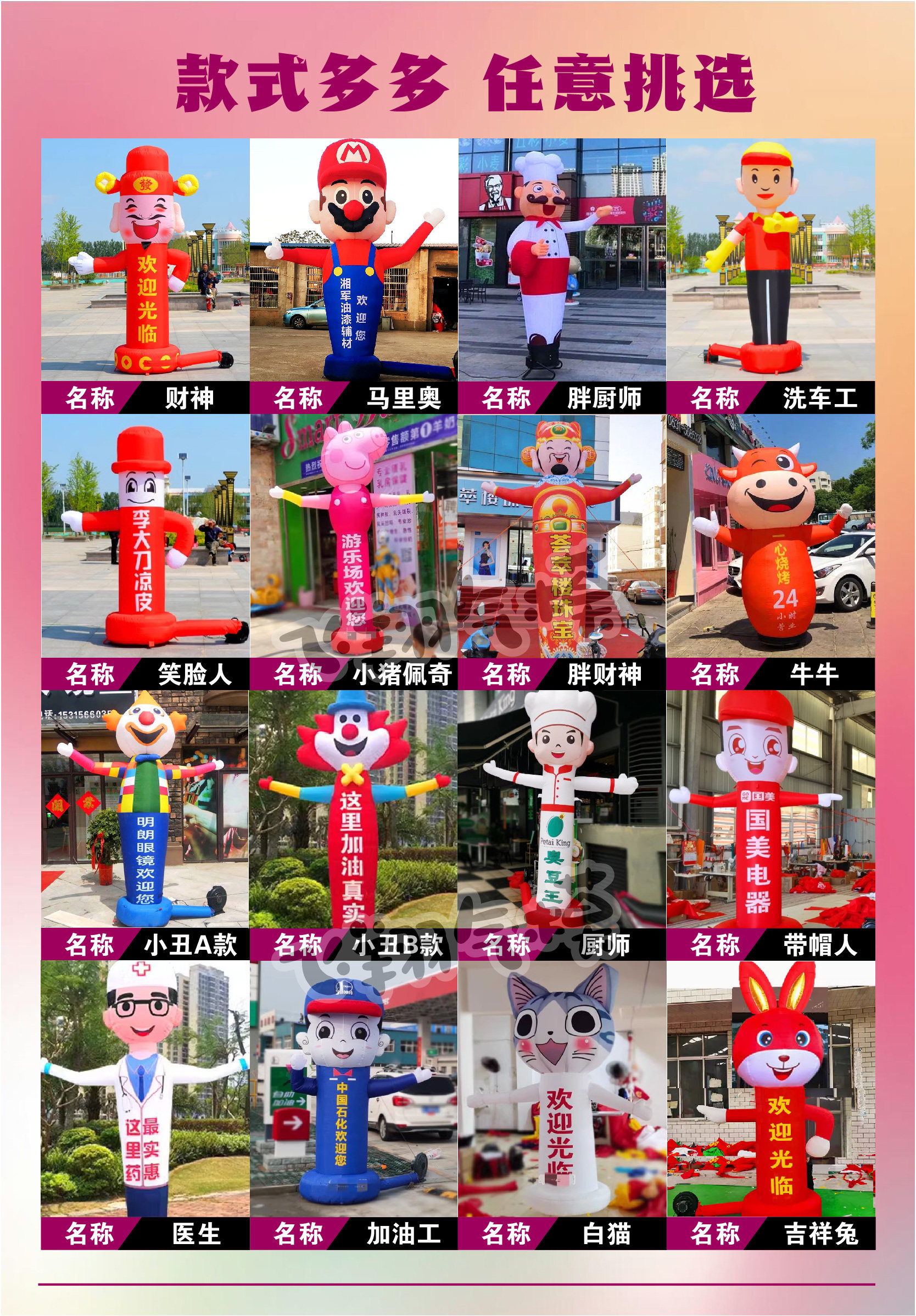 Надувная танцующая кукла, мультяшный надувной талисман, делается под заказ