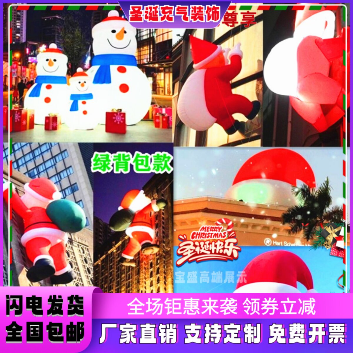 Надувное надувное Санта -Клаус Популярная модель Рождественская светящаяся подвесная даосская мультипликационная карикатура