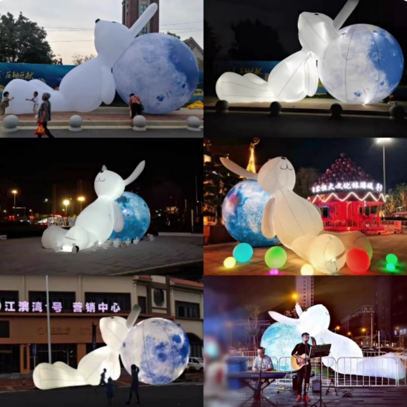 - 6-метровый надувной кролик Chang'e Rabbit, летящий на Луну, воздуходувка + освещение