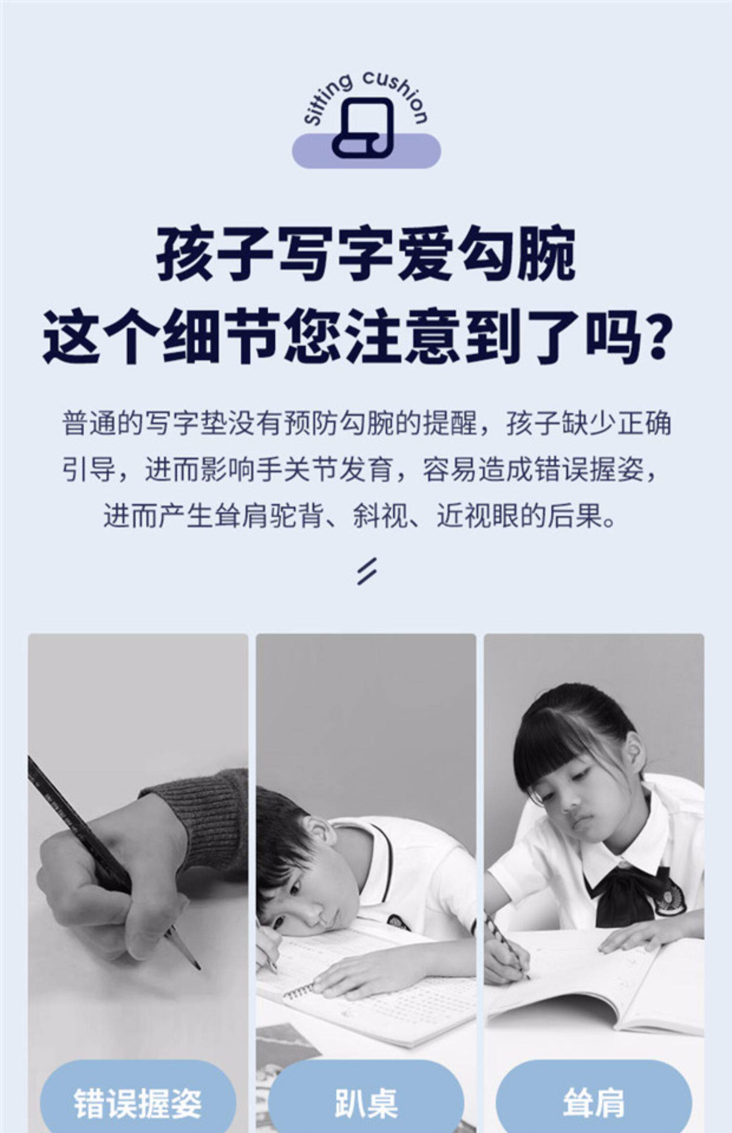 Стандартизировать написание положительных подушек учеников начальной школы, написание настольных компьютеров и гангстеров, чтобы предотвратить положение сидящего запястья для исправления подушной анти -скользящей миопии