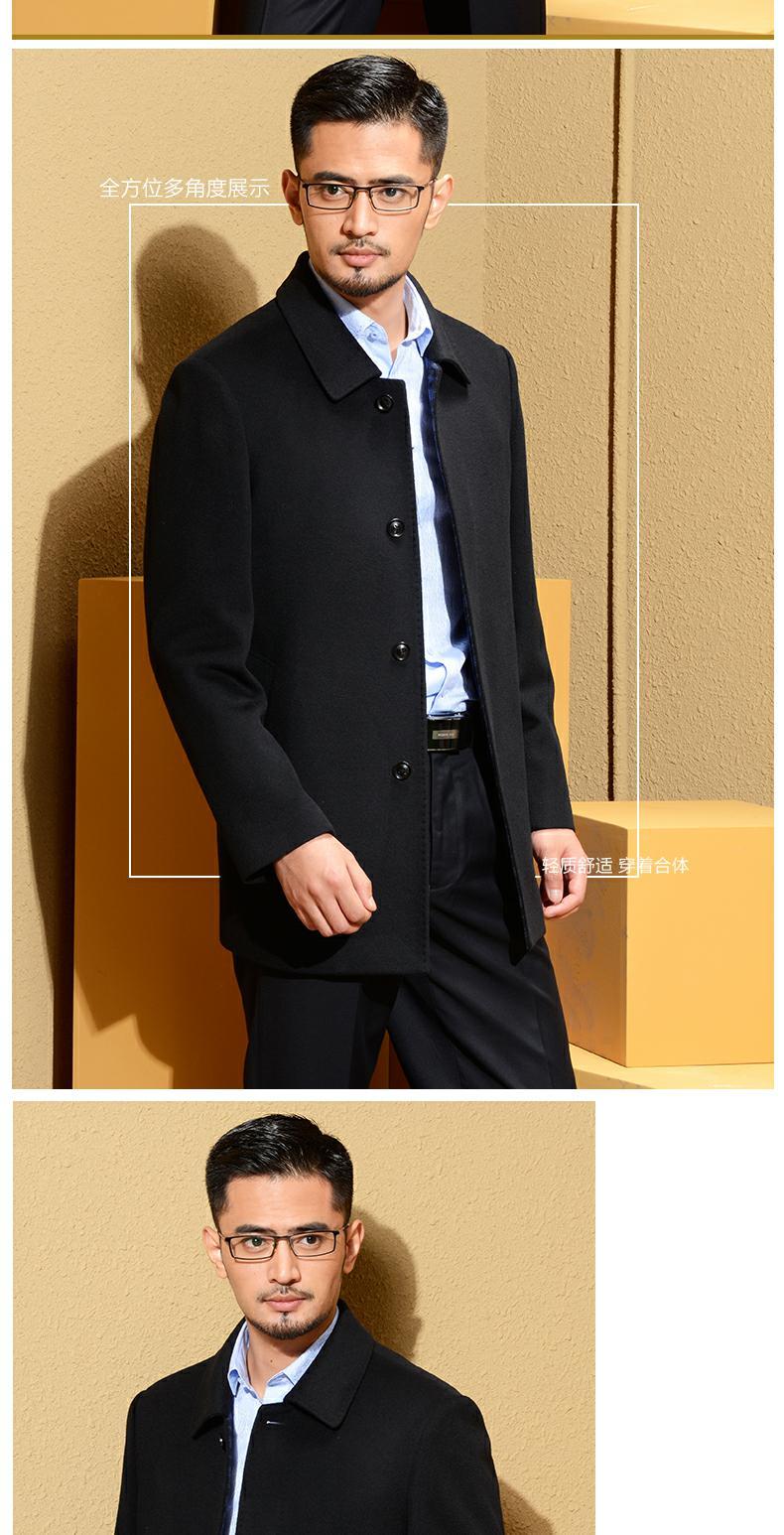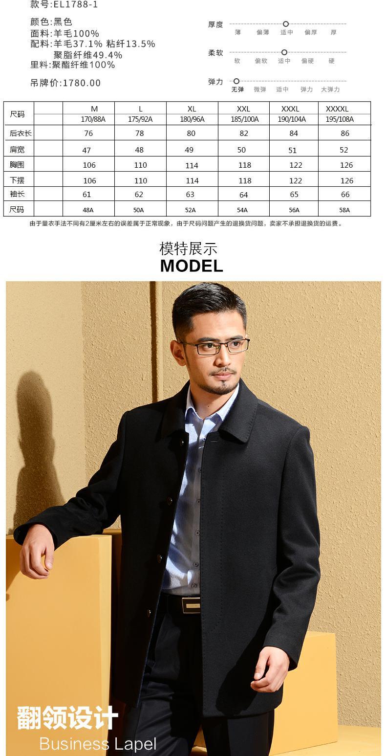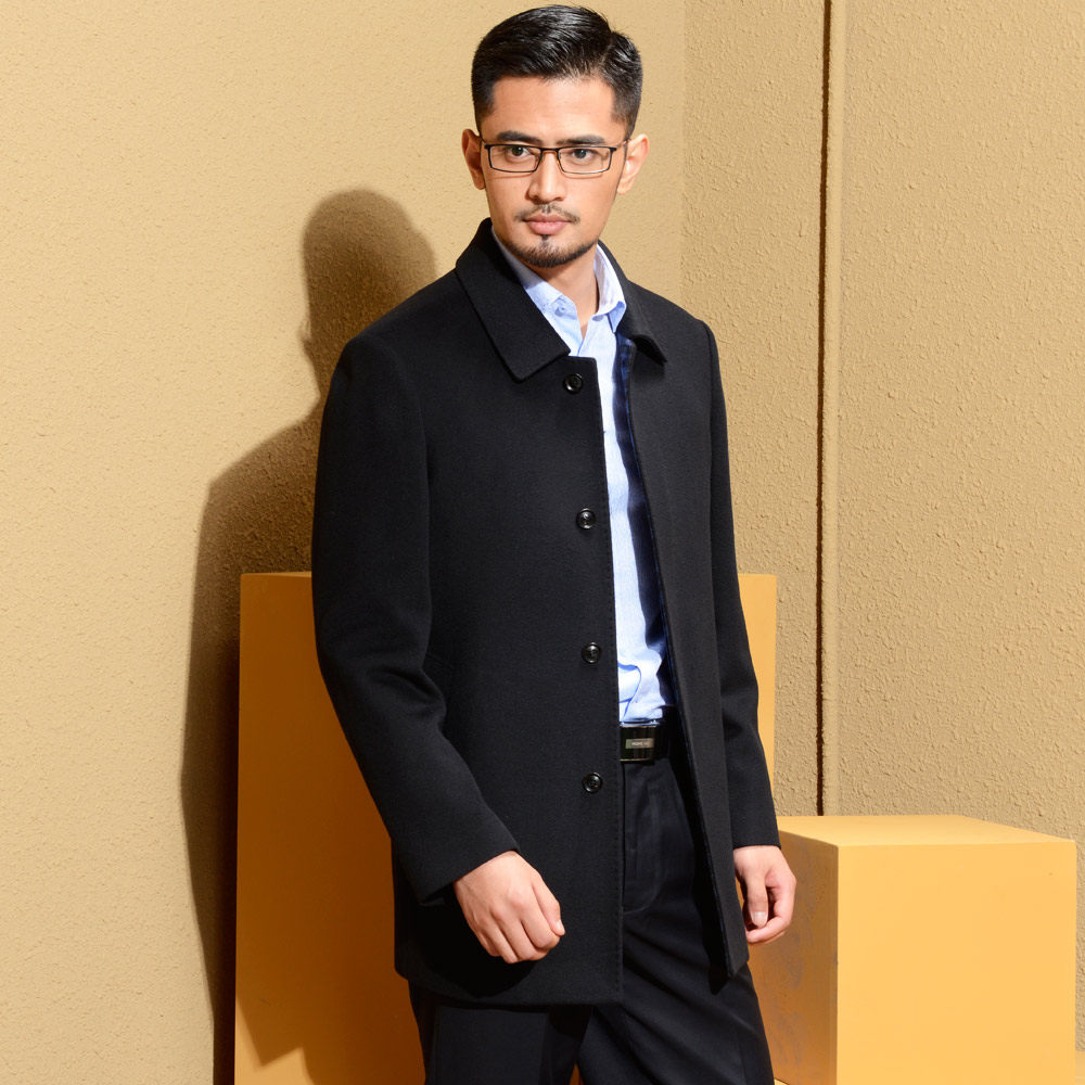 Черное удерживающее тепло шерстяное шерстяное пальто, для мужчины среднего возраста