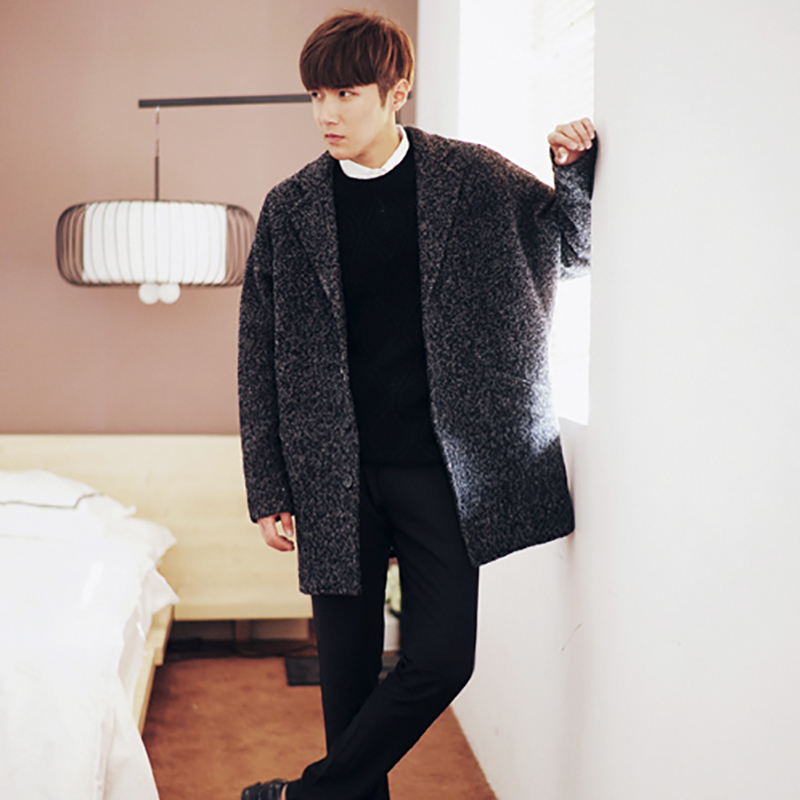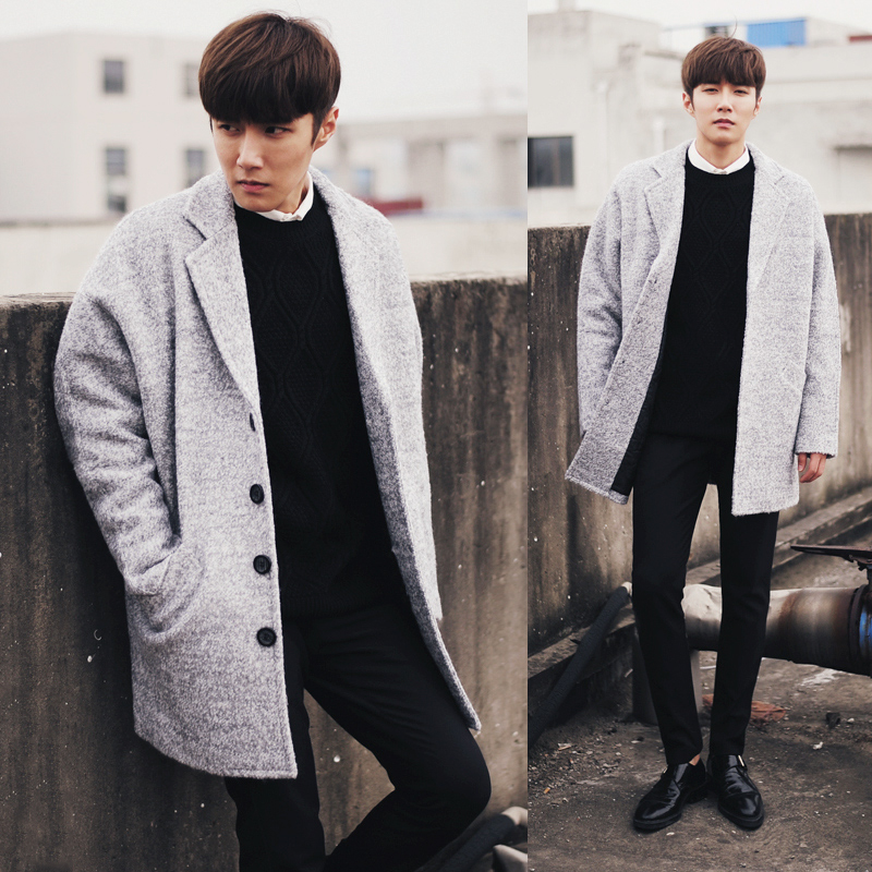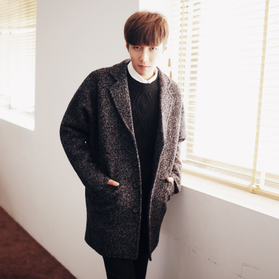 Мужское длинное шерстяное пальто, в корейском стиле, средней длины, увеличенная толщина