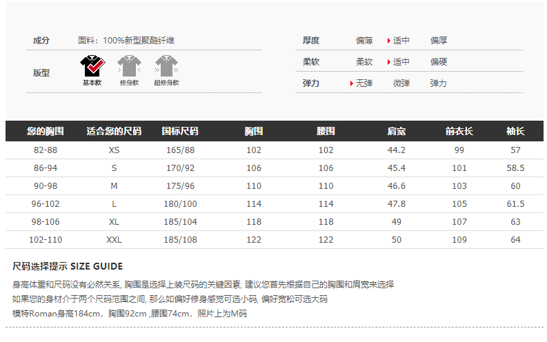 | Размер: | XS/165, S/170, M/175, L/180, XL/185, XXL/185 |