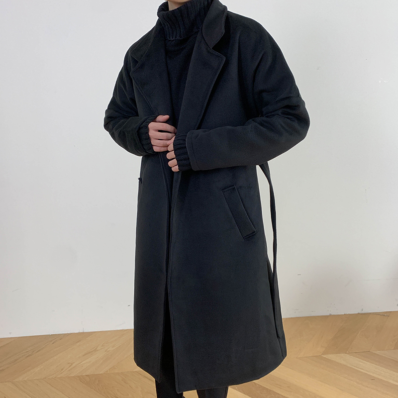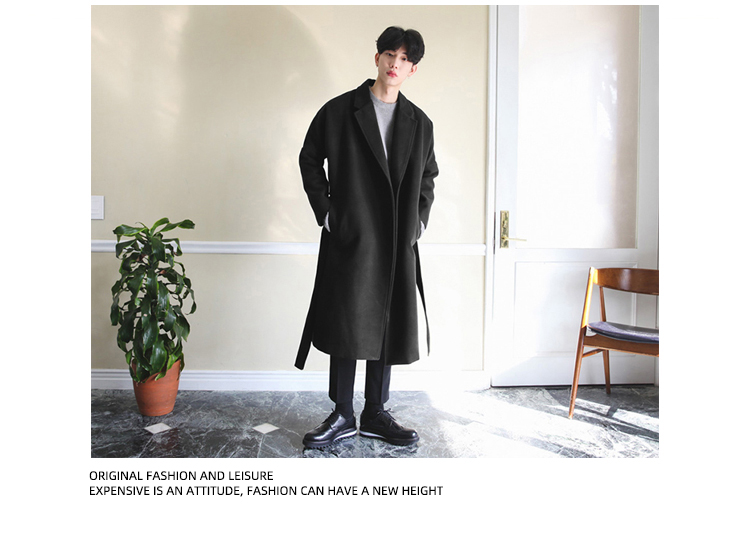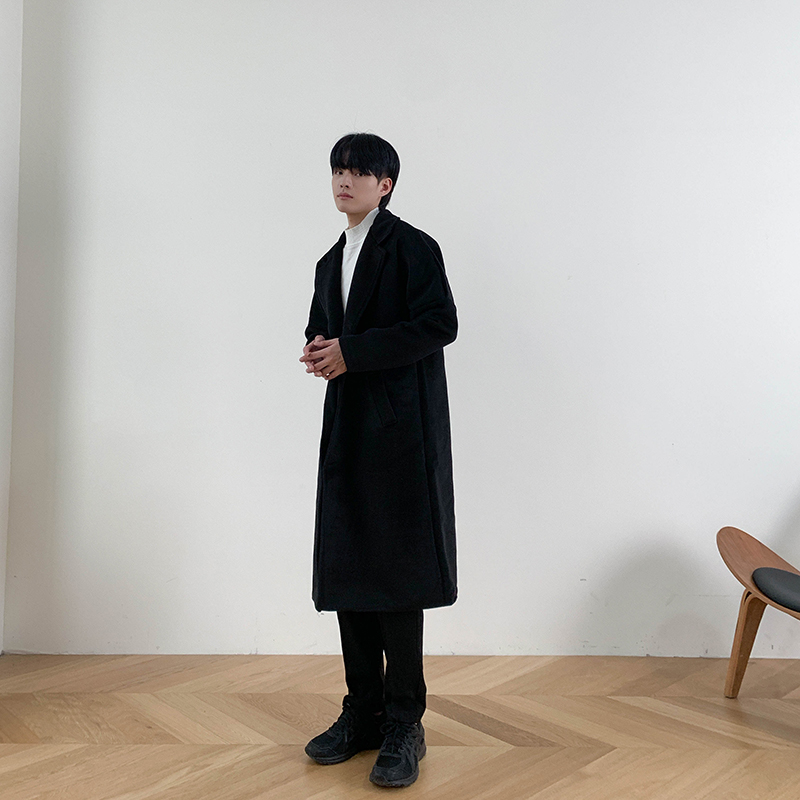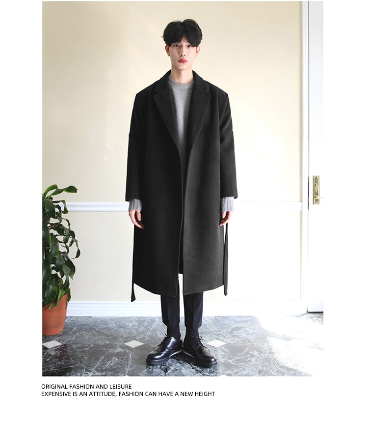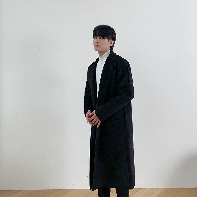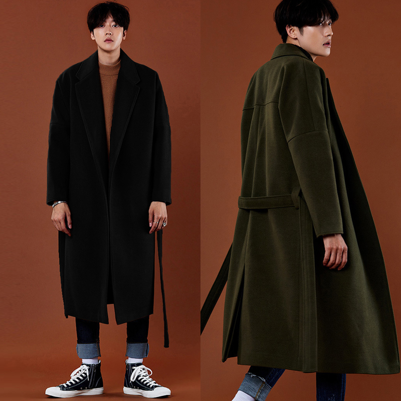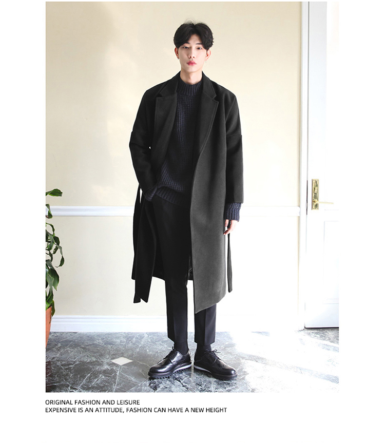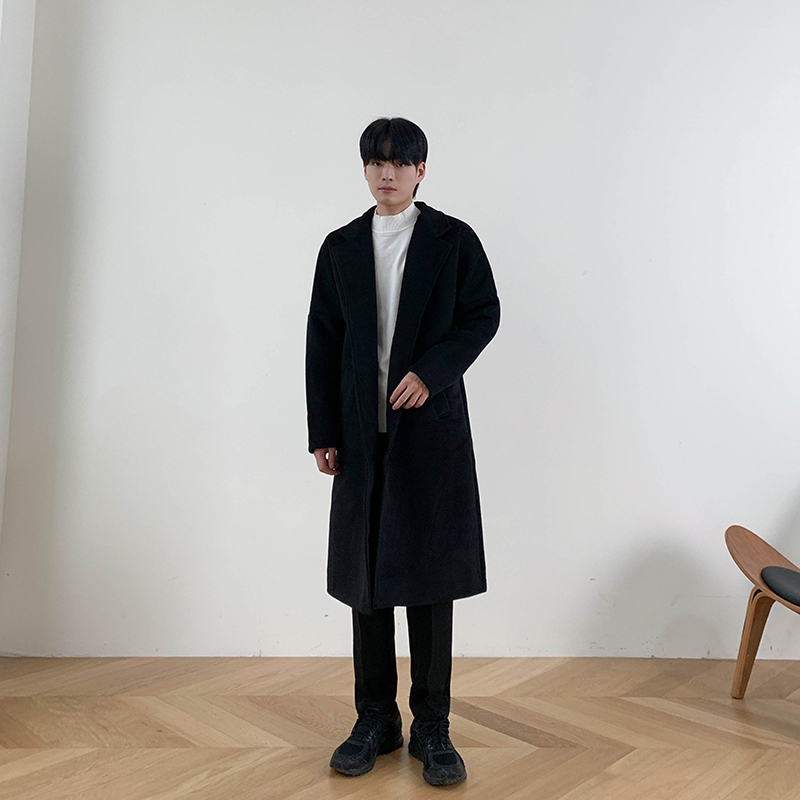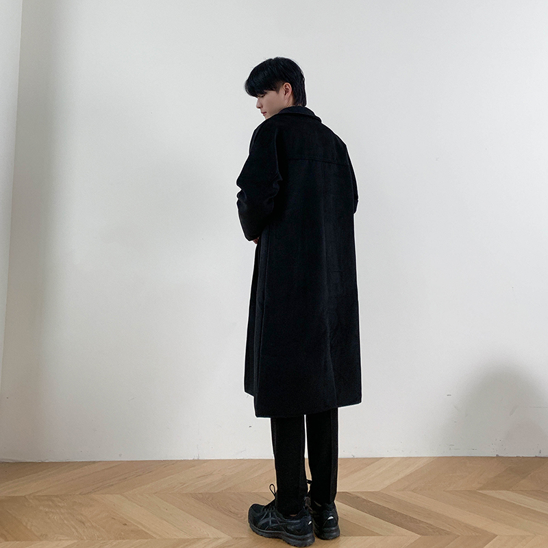 Демисезонное шерстяное пальто в английском стиле, мужская длинная демисезонная куртка, в корейском стиле