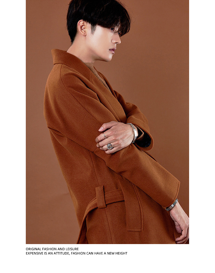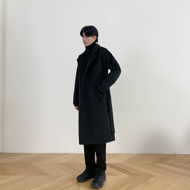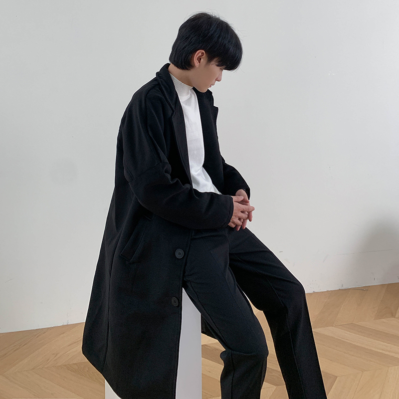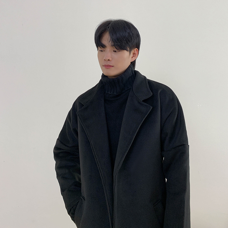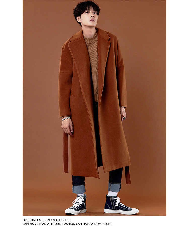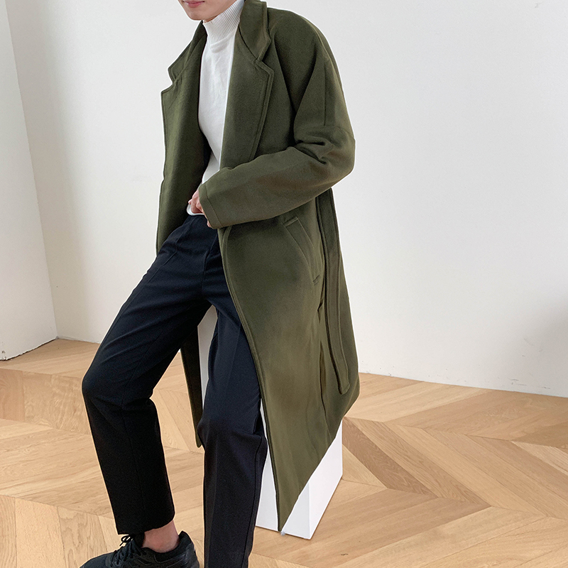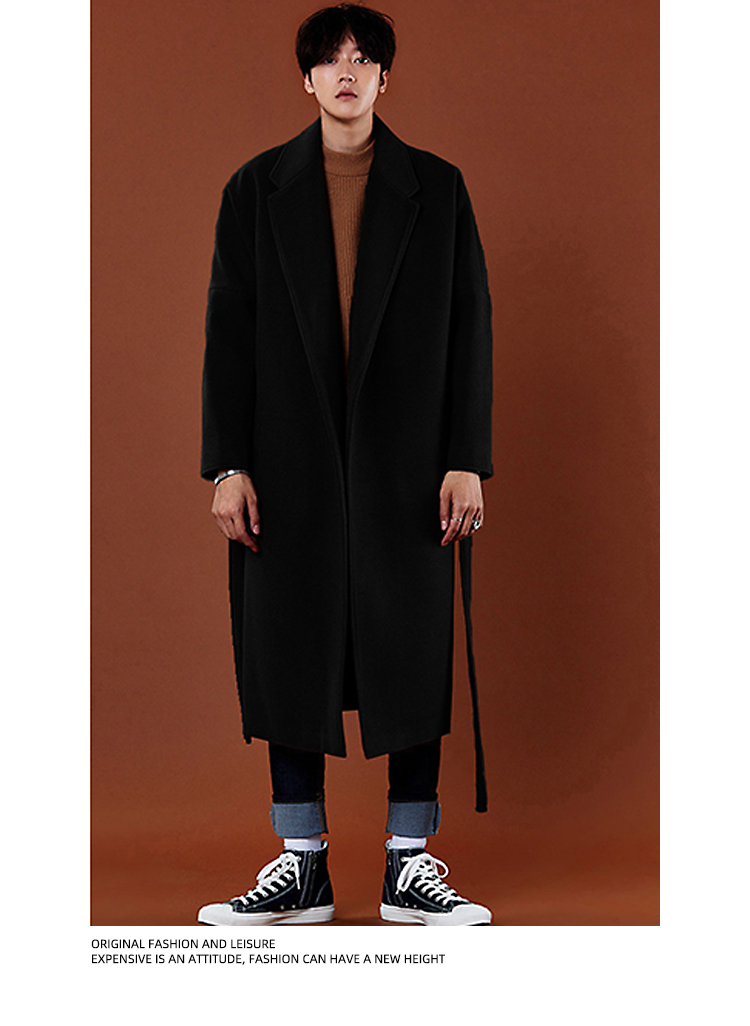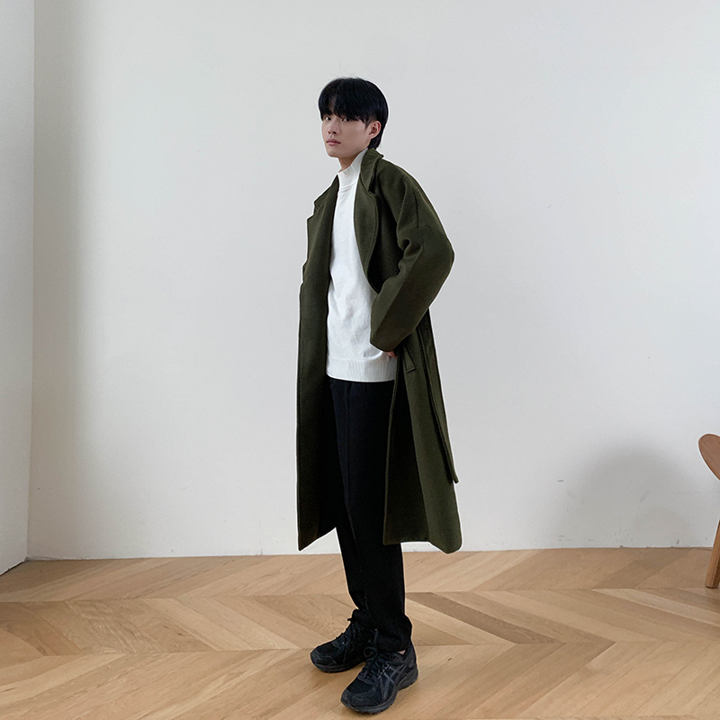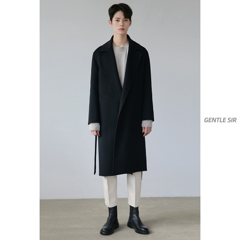 Демисезонное шерстяное пальто в английском стиле, мужская длинная демисезонная куртка, в корейском стиле