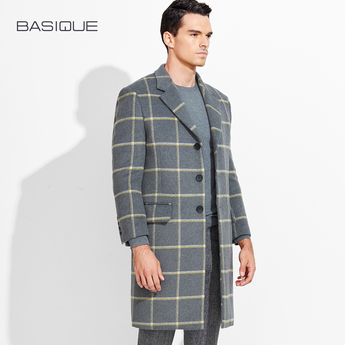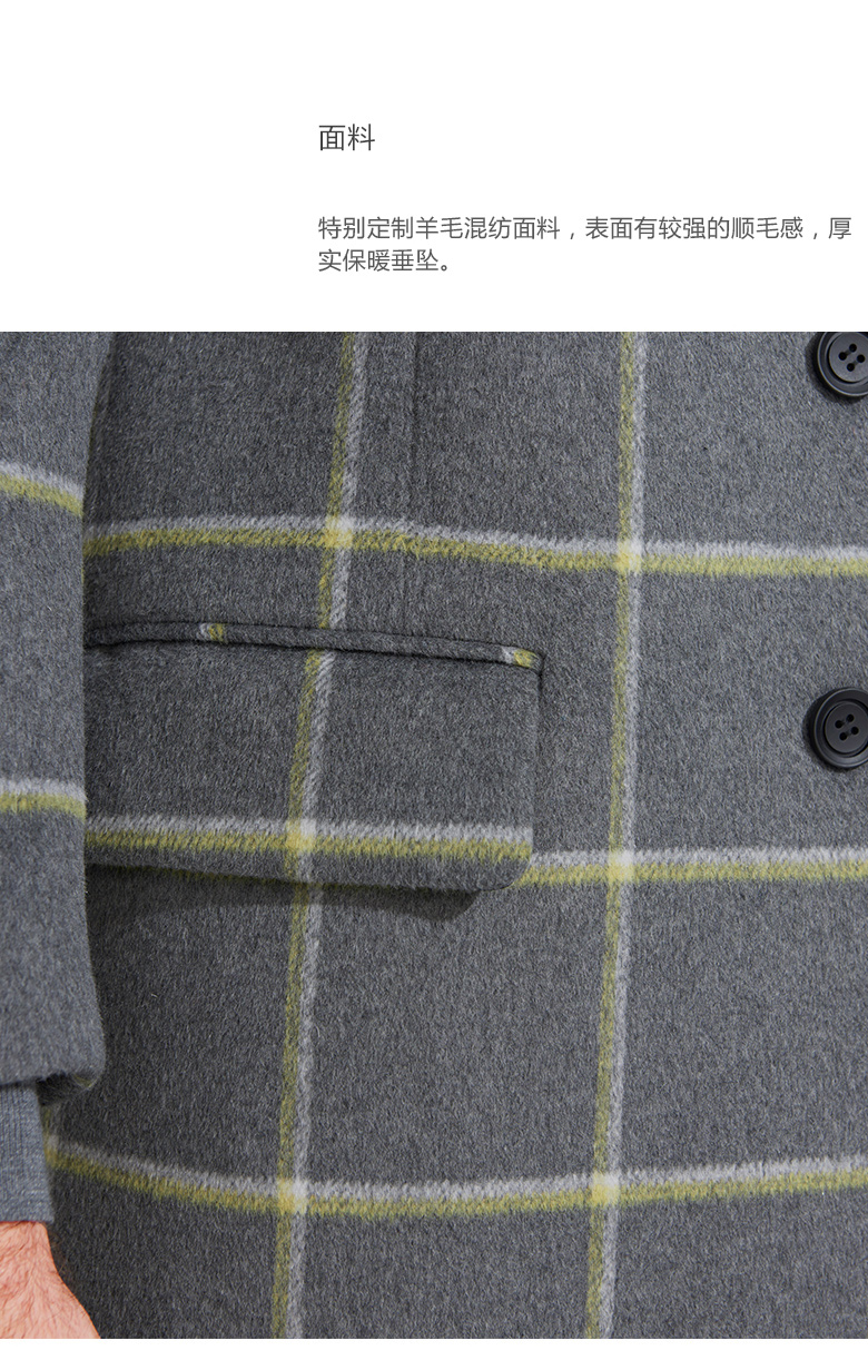 Мужское вместительное и большое шерстяное длинное приталенное демисезонное трендовое шерстяное пальто, средней длины