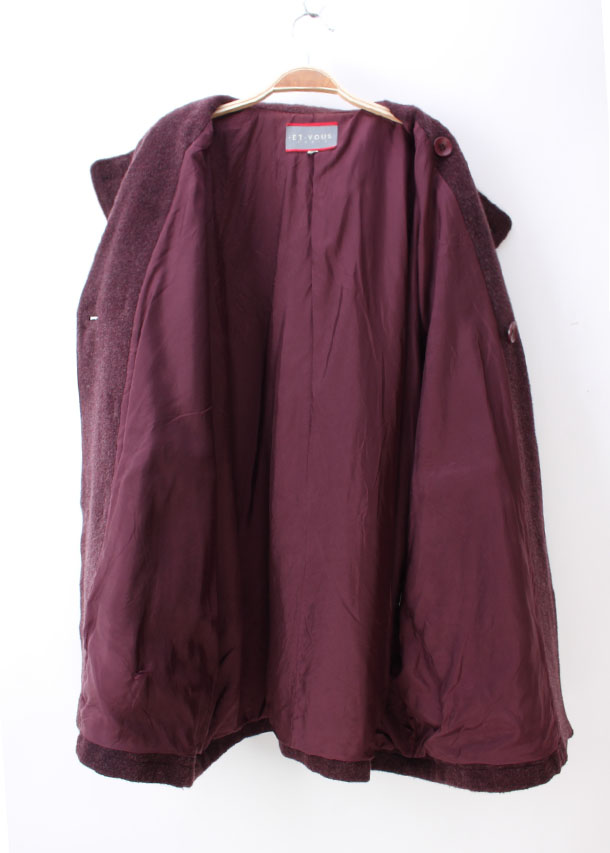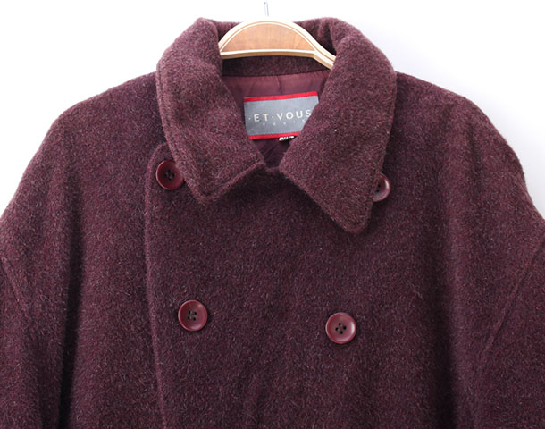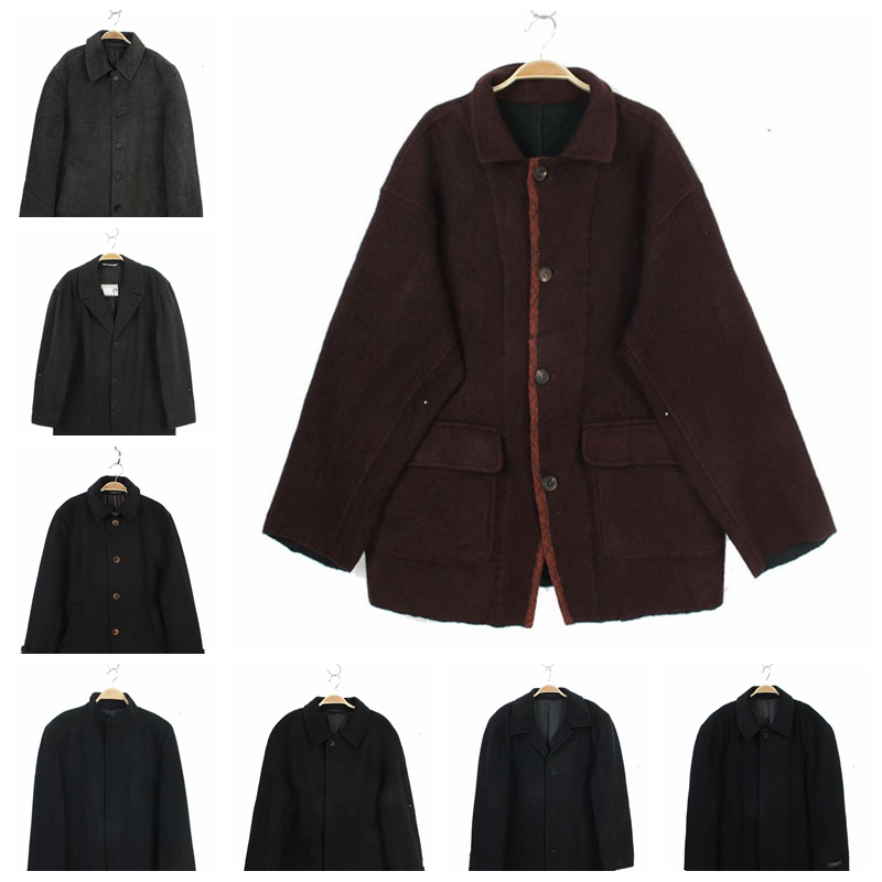 Винтажный древний ретро -ретро -ретро -японский мужчина -овца шерсть альпака, короткое пальто, простой твердый цвет