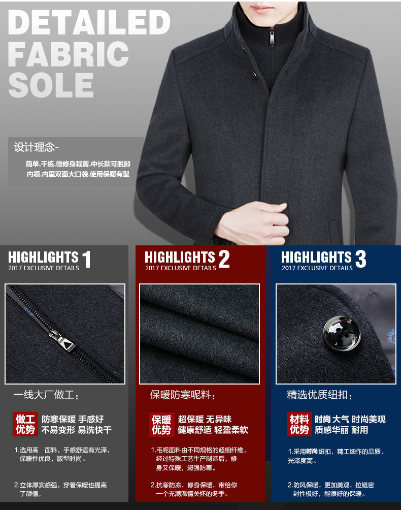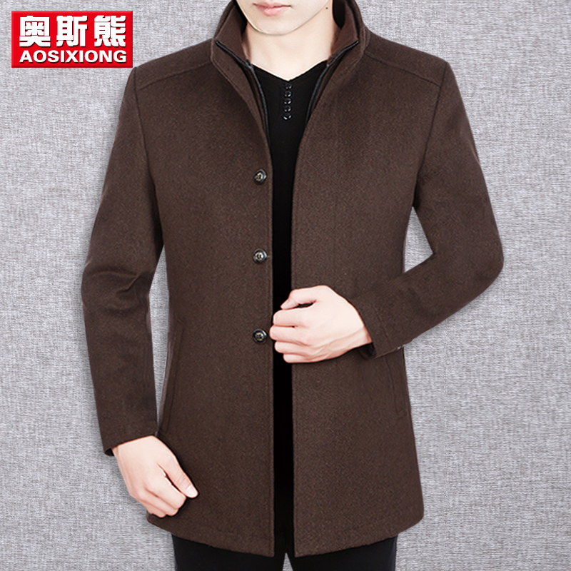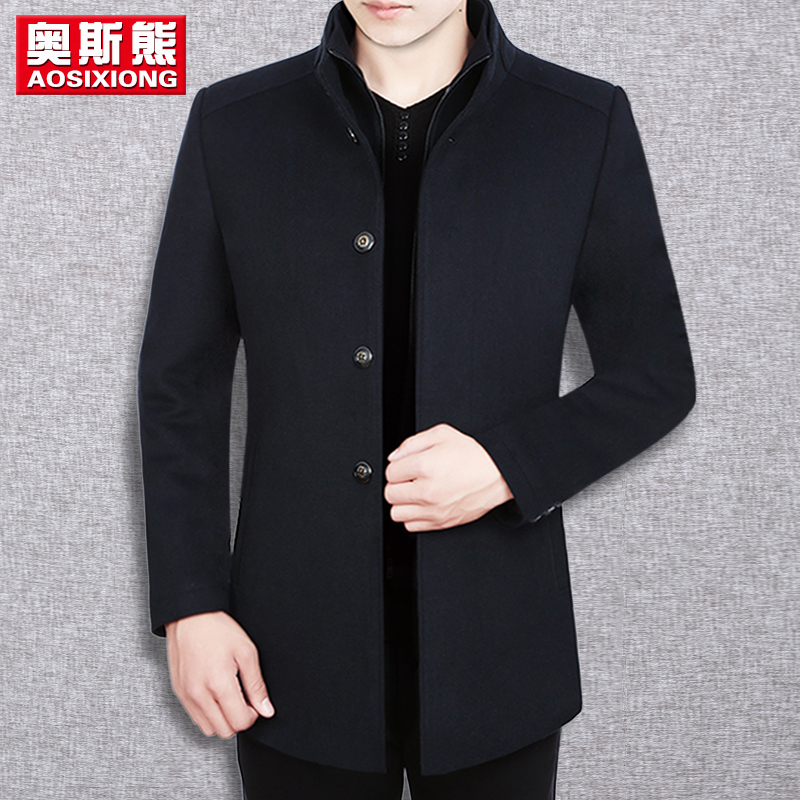 Шерстяное длинное шерстяное пальто для отдыха, демисезонная куртка, для мужчины среднего возраста, средней длины