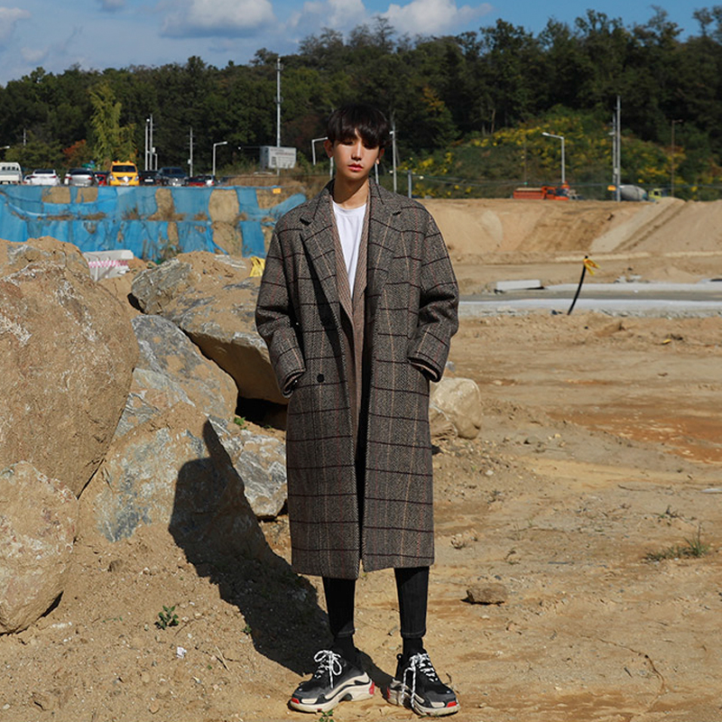 Зимнее трендовое длинное шерстяное шерстяное пальто для мальчиков, плащ, средней длины, оверсайз