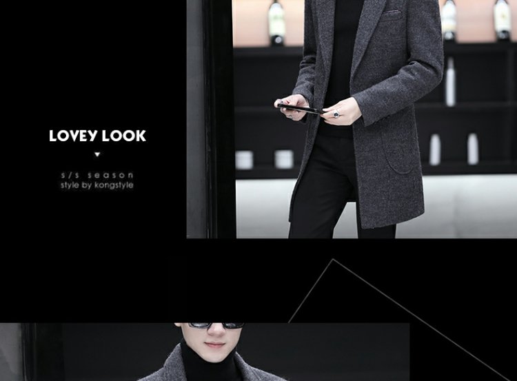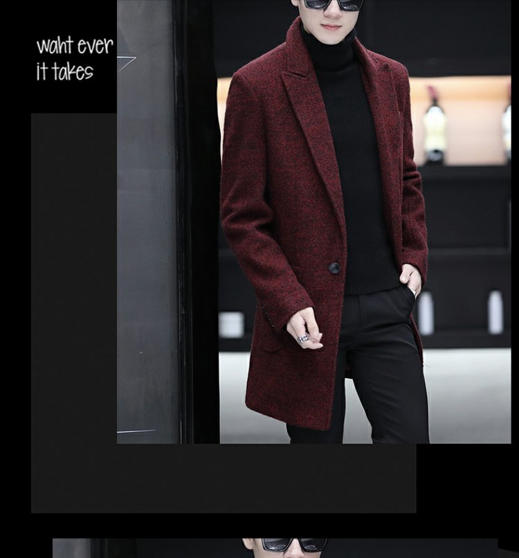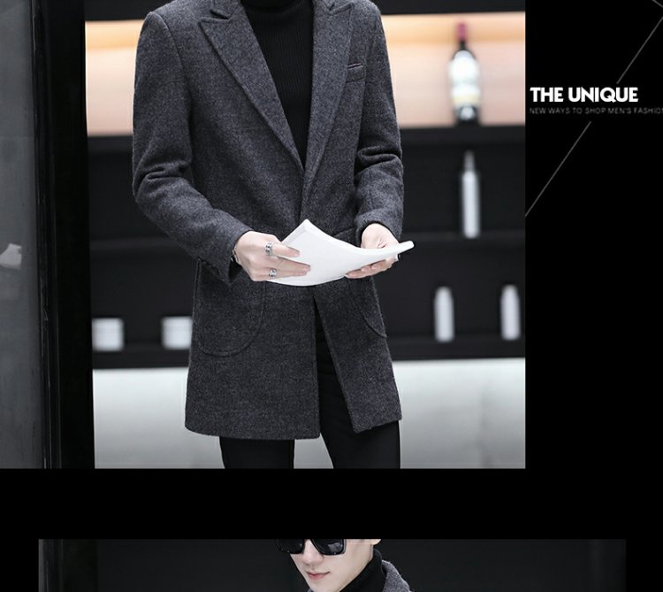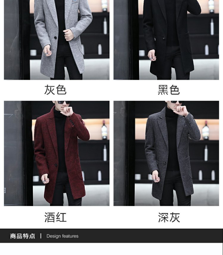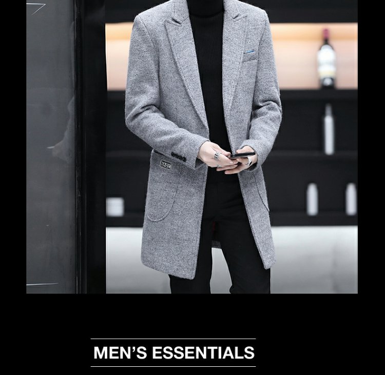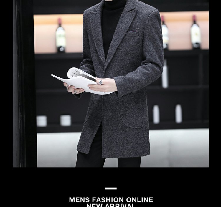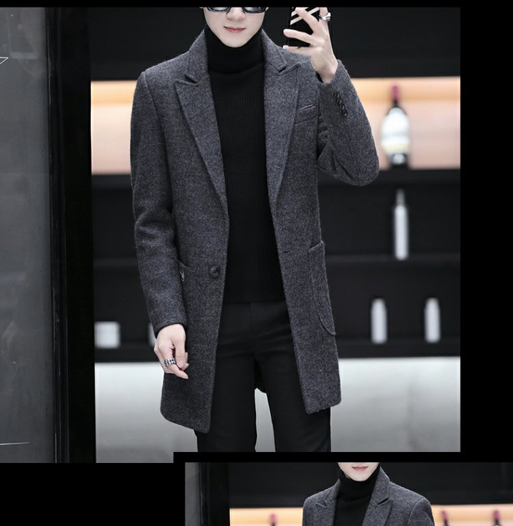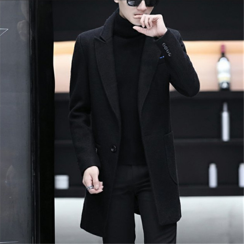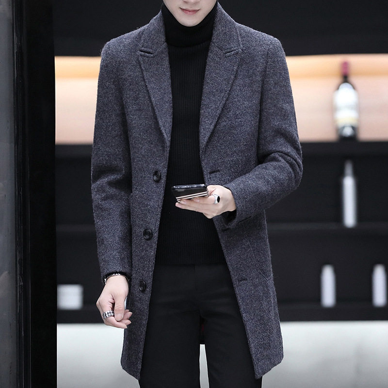 Демисезонный длинный плащ для мальчиков, трендовое шерстяное пальто, куртка, средней длины, облегающий крой, увеличенная толщина