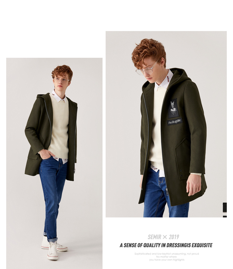 Semir, шерстяное пальто, демисезонная длинная толстовка с капюшоном, шерстяная куртка, 2019