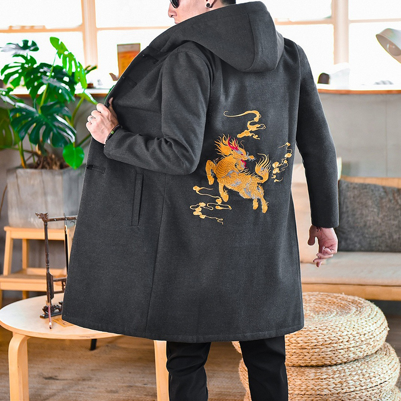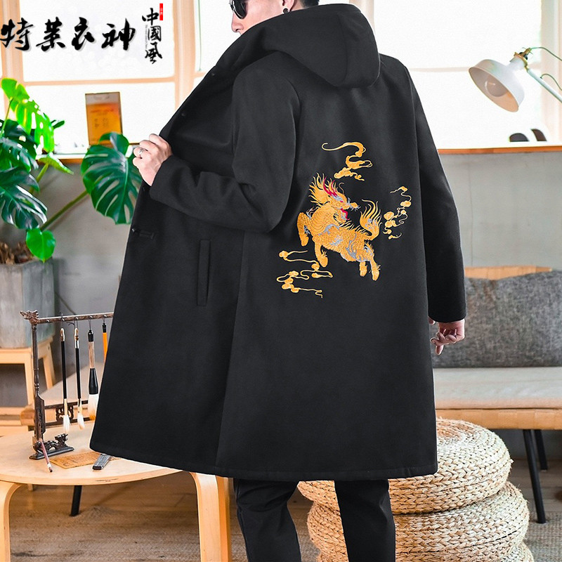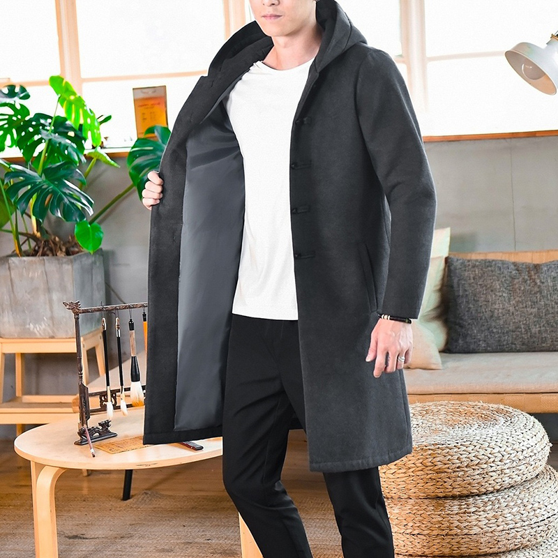 Демисезонное шерстяное пальто для отдыха, толстовка с капюшоном, плащ, китайский стиль, оверсайз