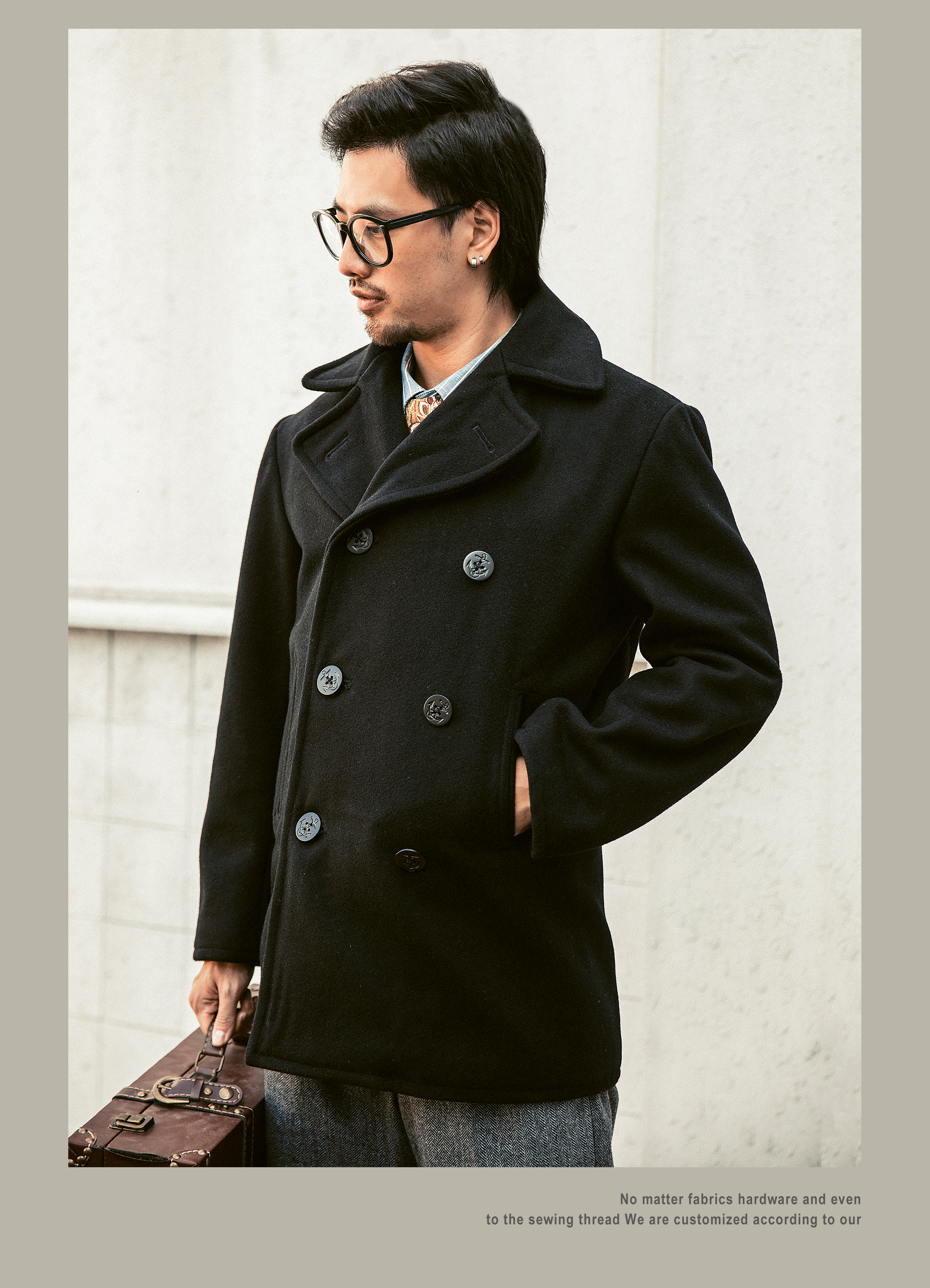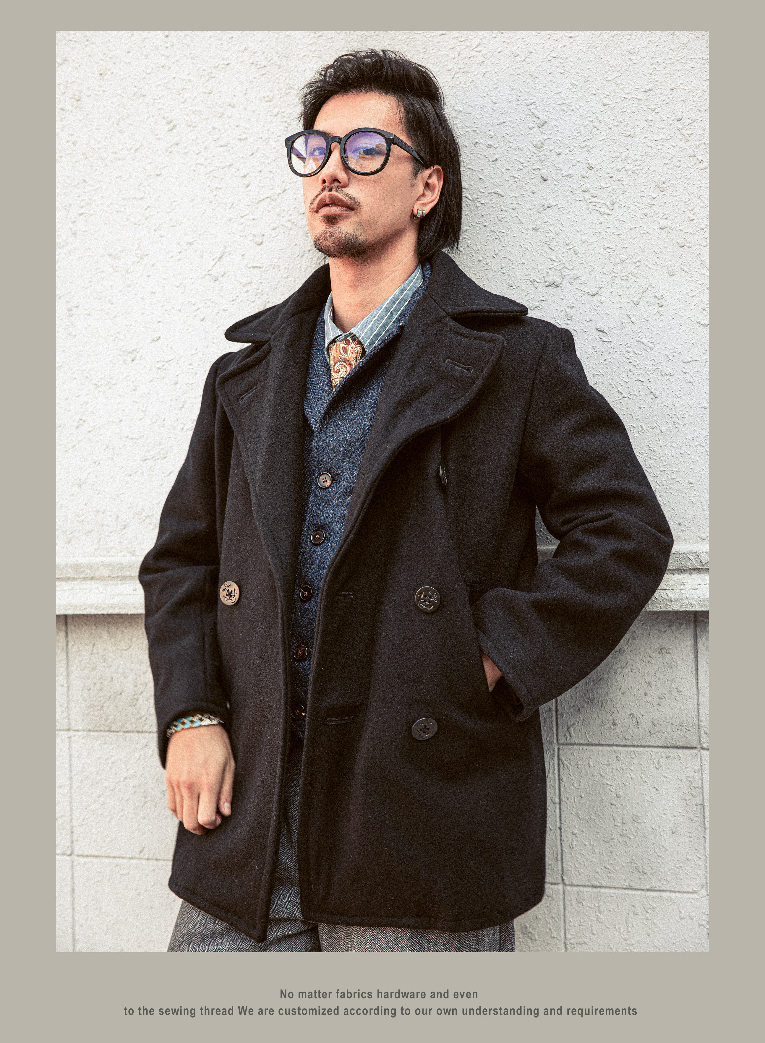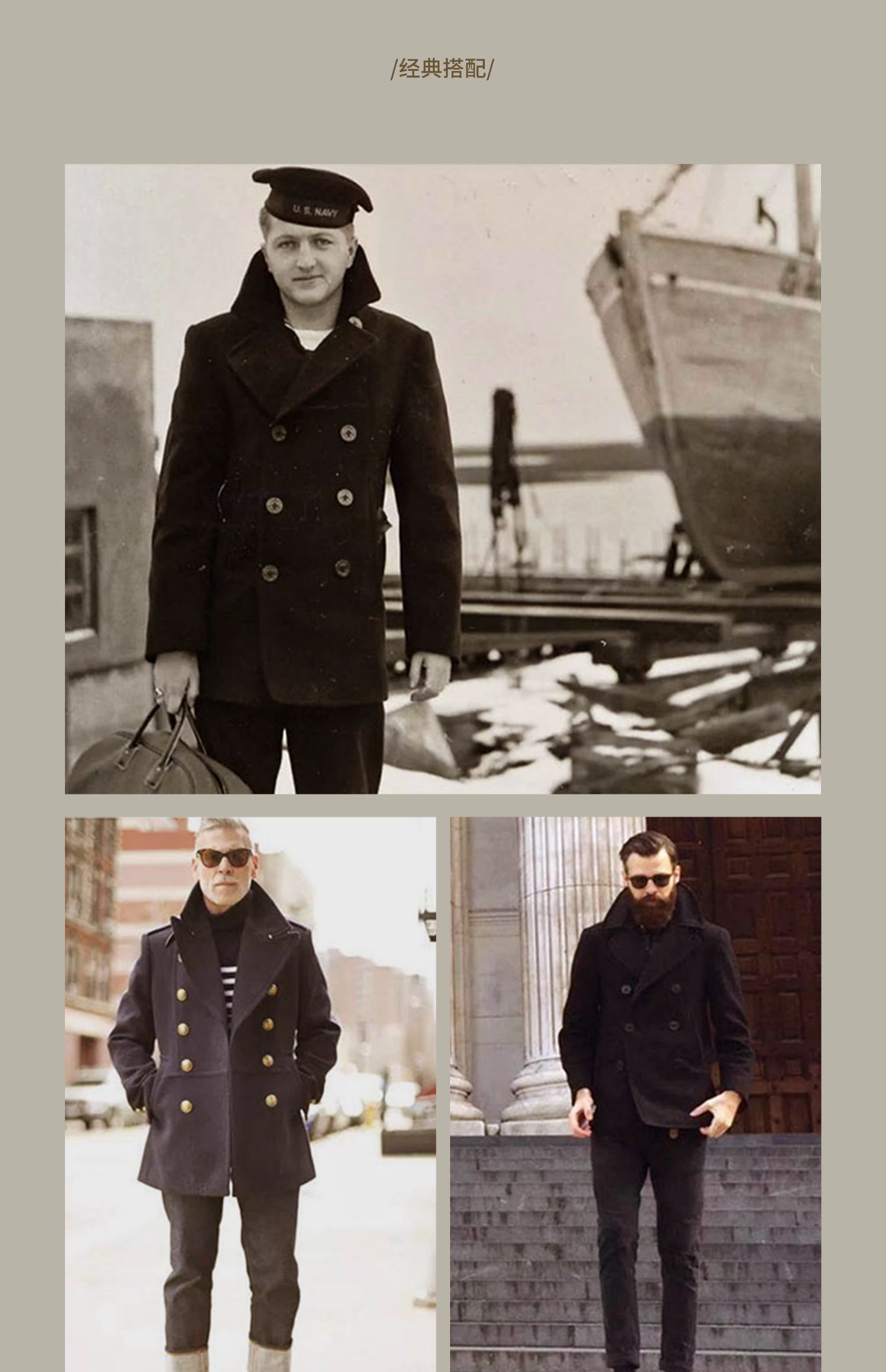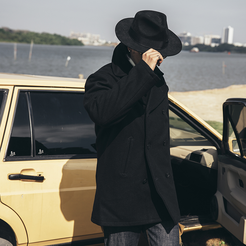 Военно-морское шерстяное длинное ретро двусторонное шерстяное пальто, средней длины, свободный крой