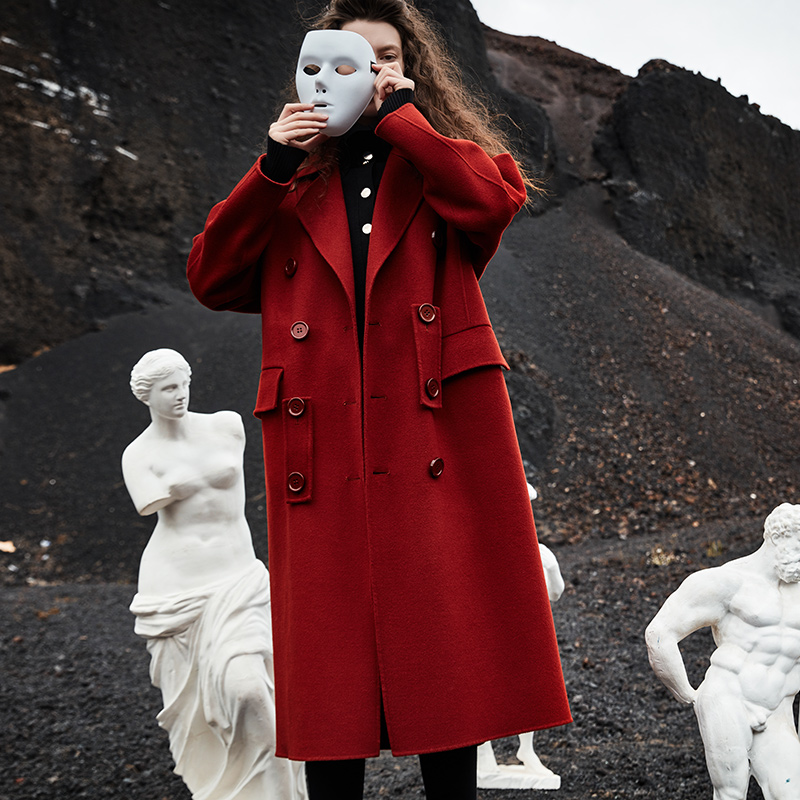 Двусторонное шерстяное длинное зимнее бархатное пальто, оверсайз, средней длины, коллекция 2021