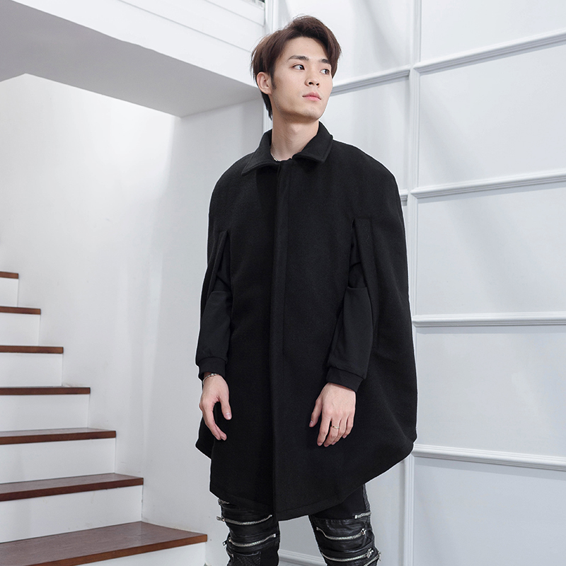 Шерстяное пальто, плащ, зимняя накидка, ассиметричный крой, оверсайз