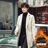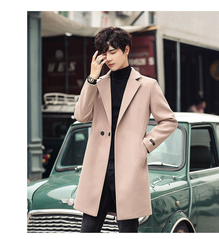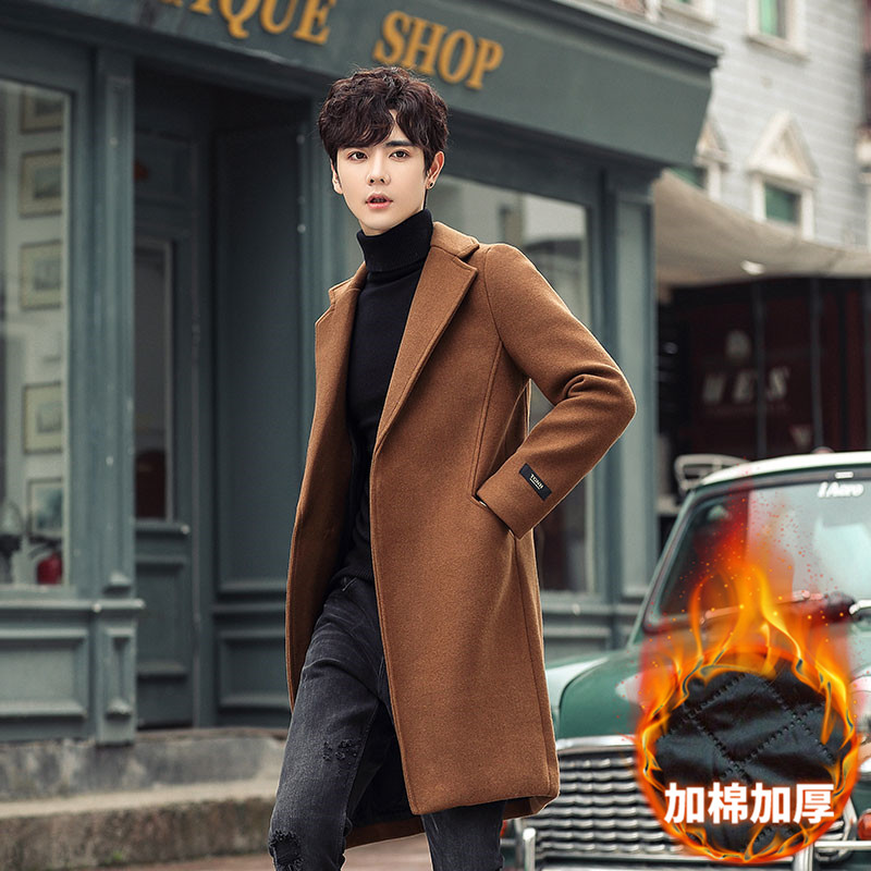 Длинная демисезонная куртка, трендовое шерстяное пальто, длина макси, облегающий крой, в корейском стиле