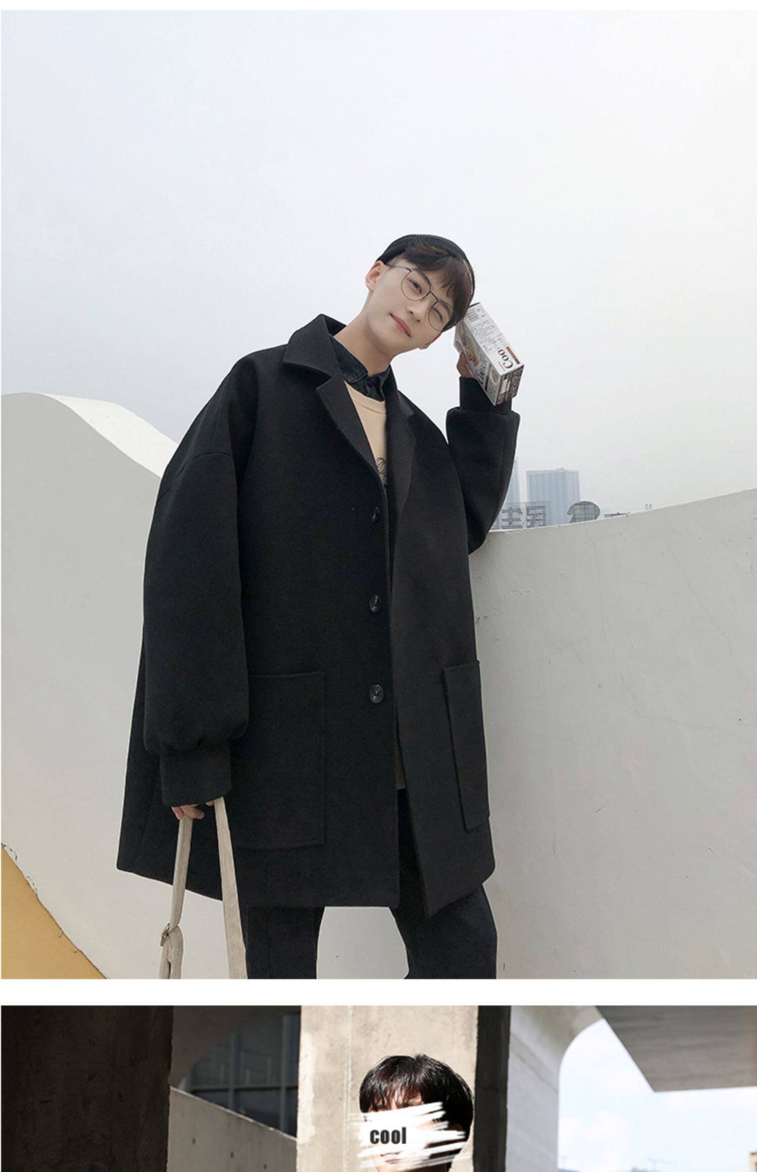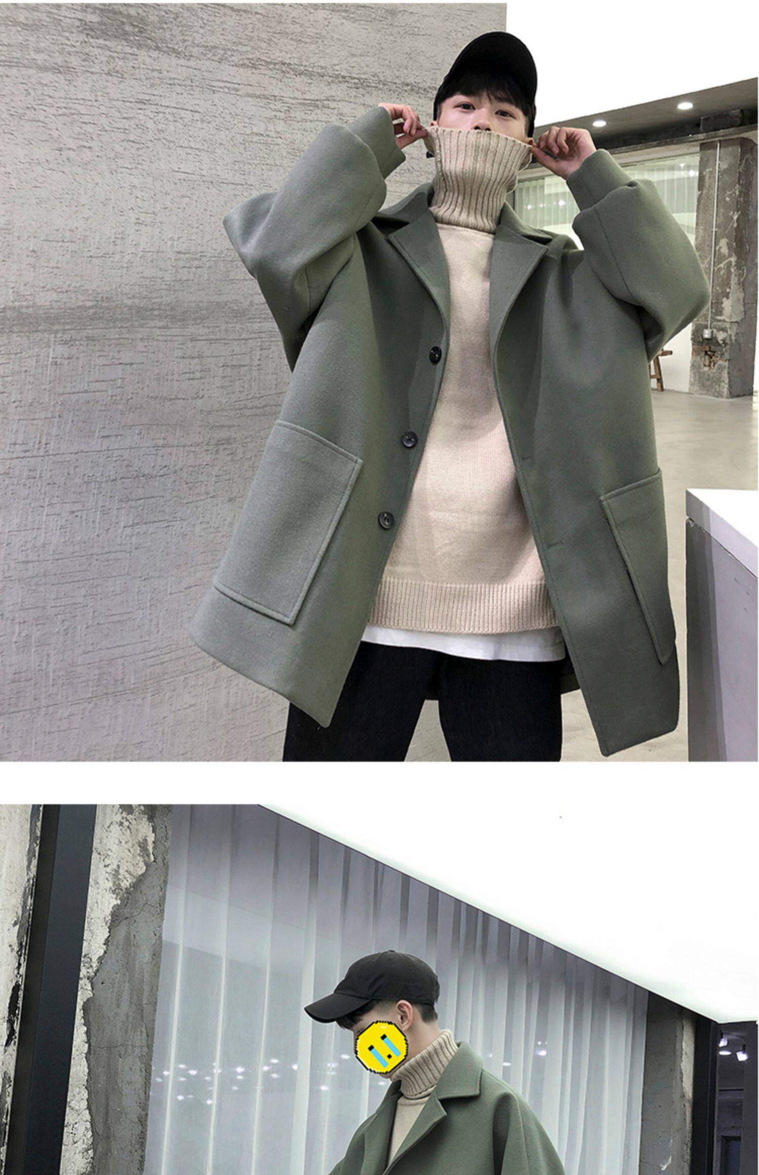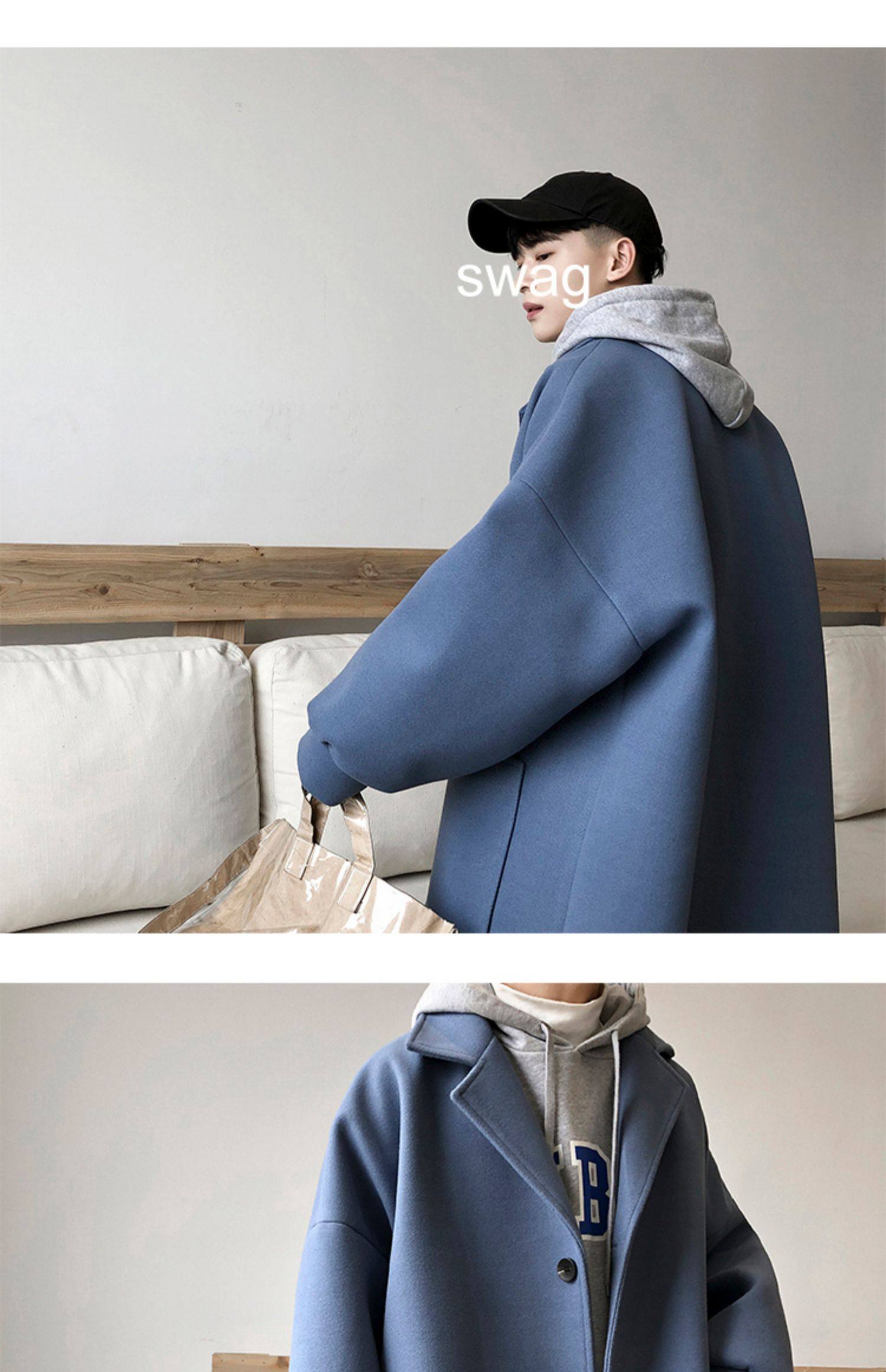 Демисезонное осеннее шерстяное пальто, трендовая длинная куртка, оверсайз, увеличенная толщина, средней длины