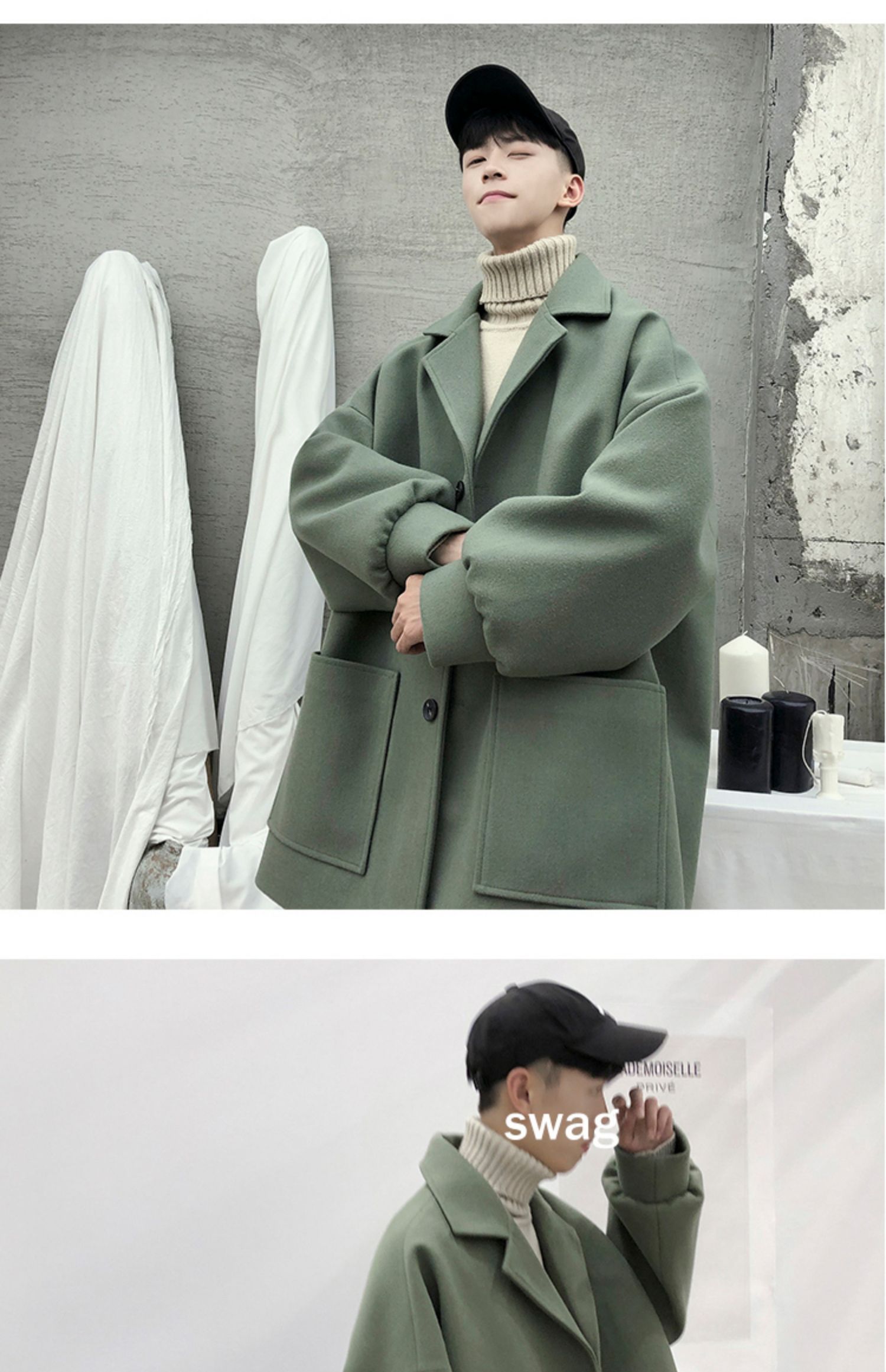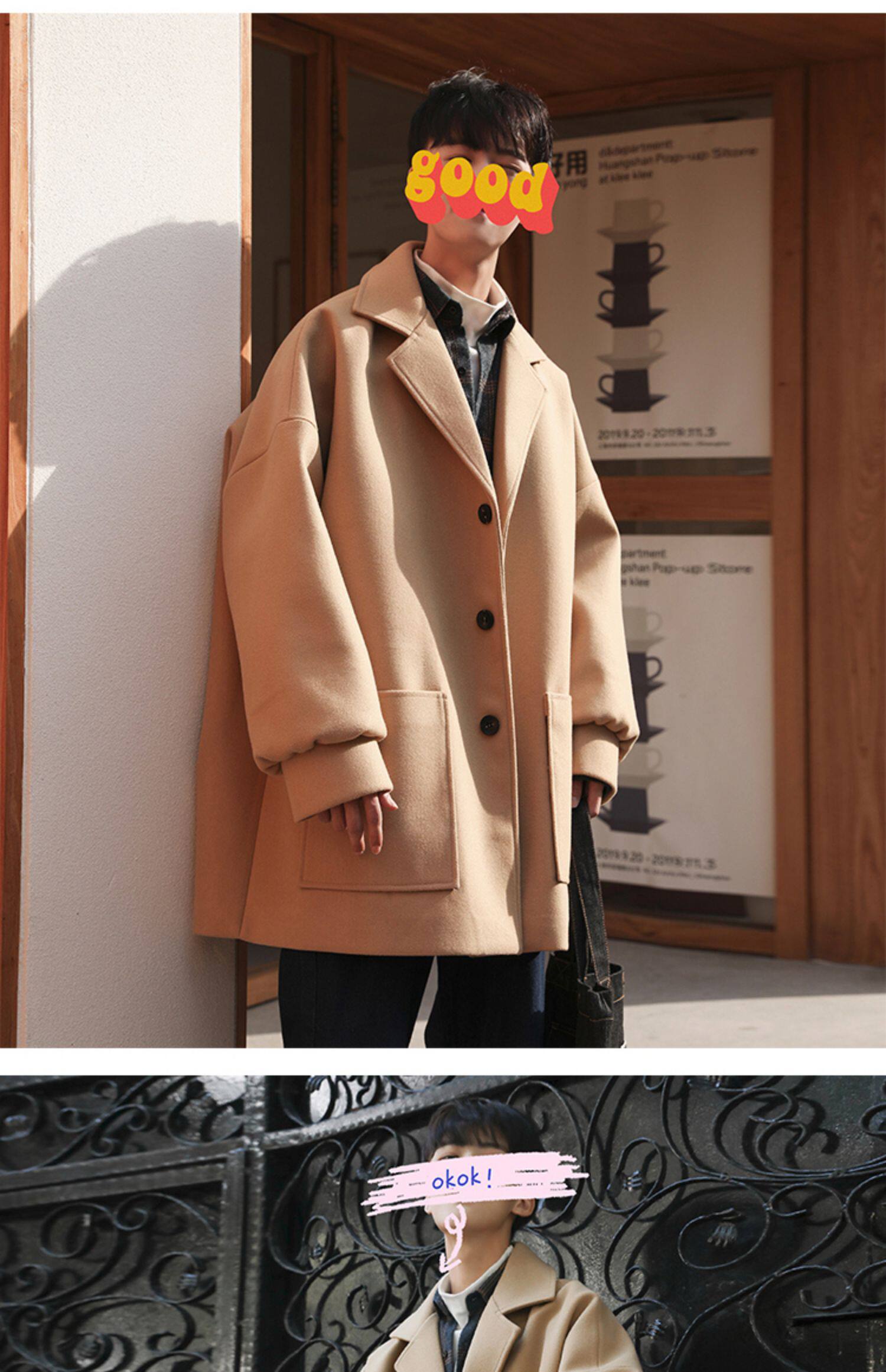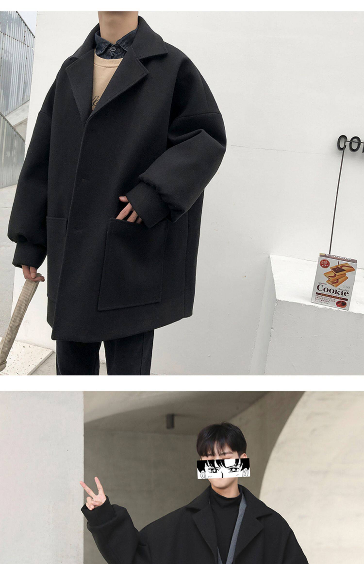 Демисезонное осеннее шерстяное пальто, трендовая длинная куртка, оверсайз, увеличенная толщина, средней длины
