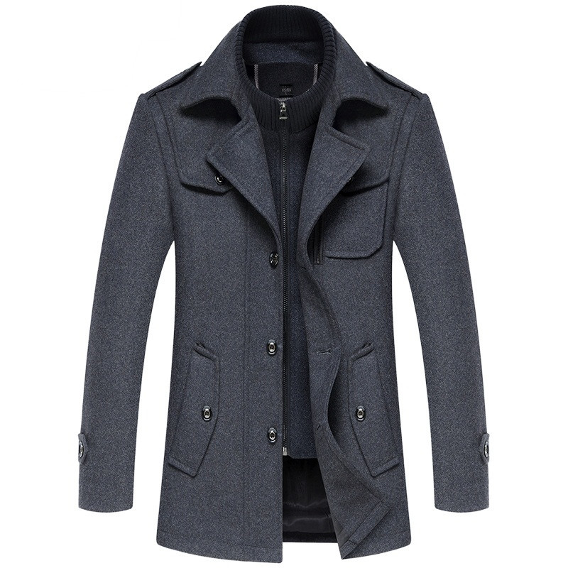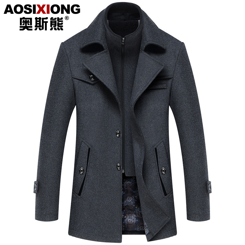 Шерстяное длинное шерстяное пальто, демисезонная куртка для отдыха, для мужчины среднего возраста, средней длины, большой размер