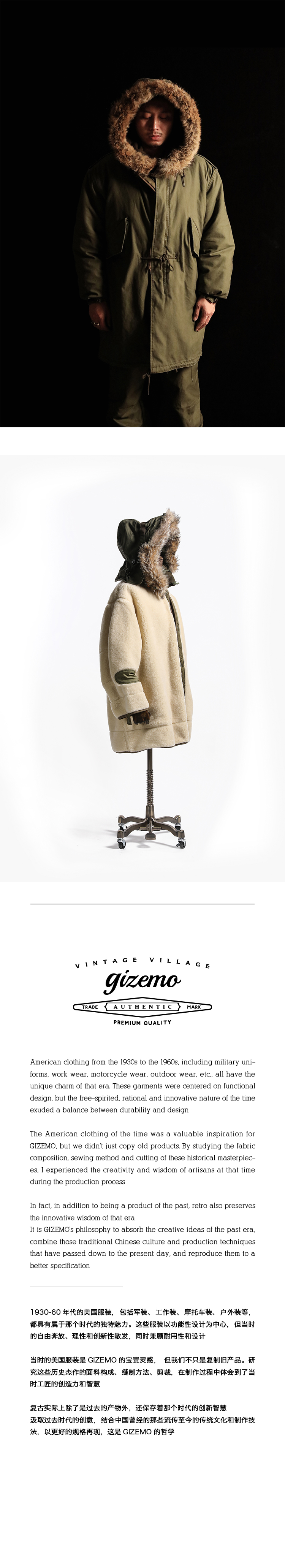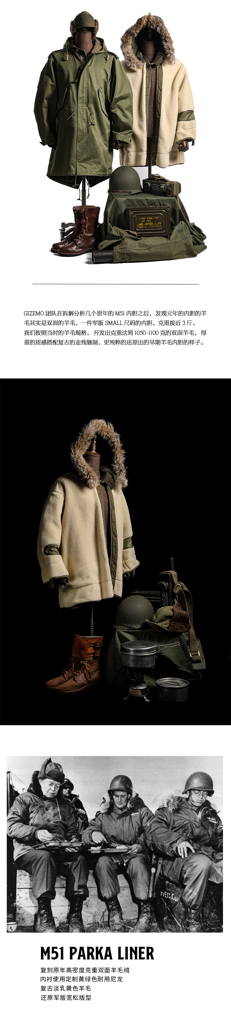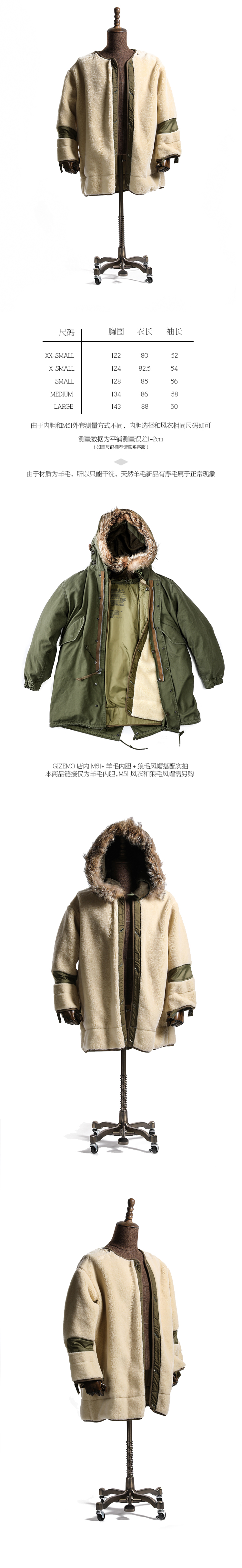 Gizemo M51 Endmine Ранняя толстая двойная шерсть M1951PARKA Рыбное хвостовое пальто согревает