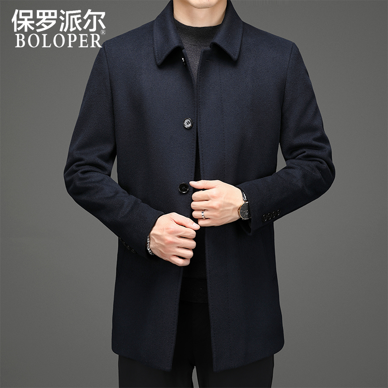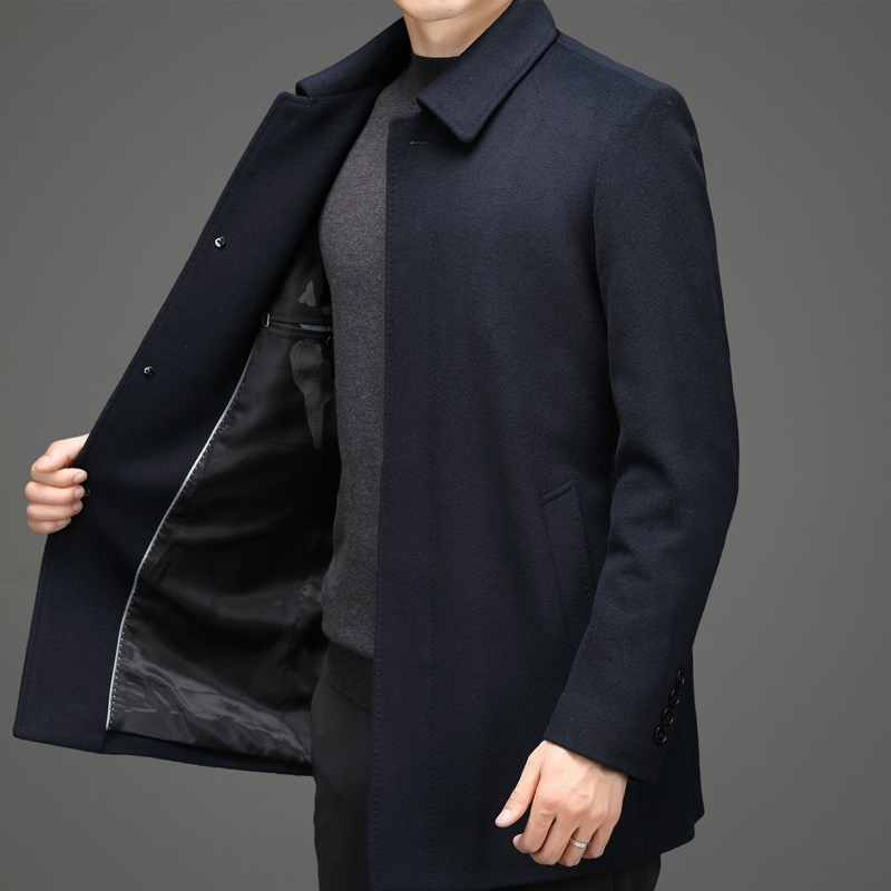 Зимнее шерстяное длинное шерстяное пальто для мальчиков, куртка для отдыха, пуховик, увеличенная толщина