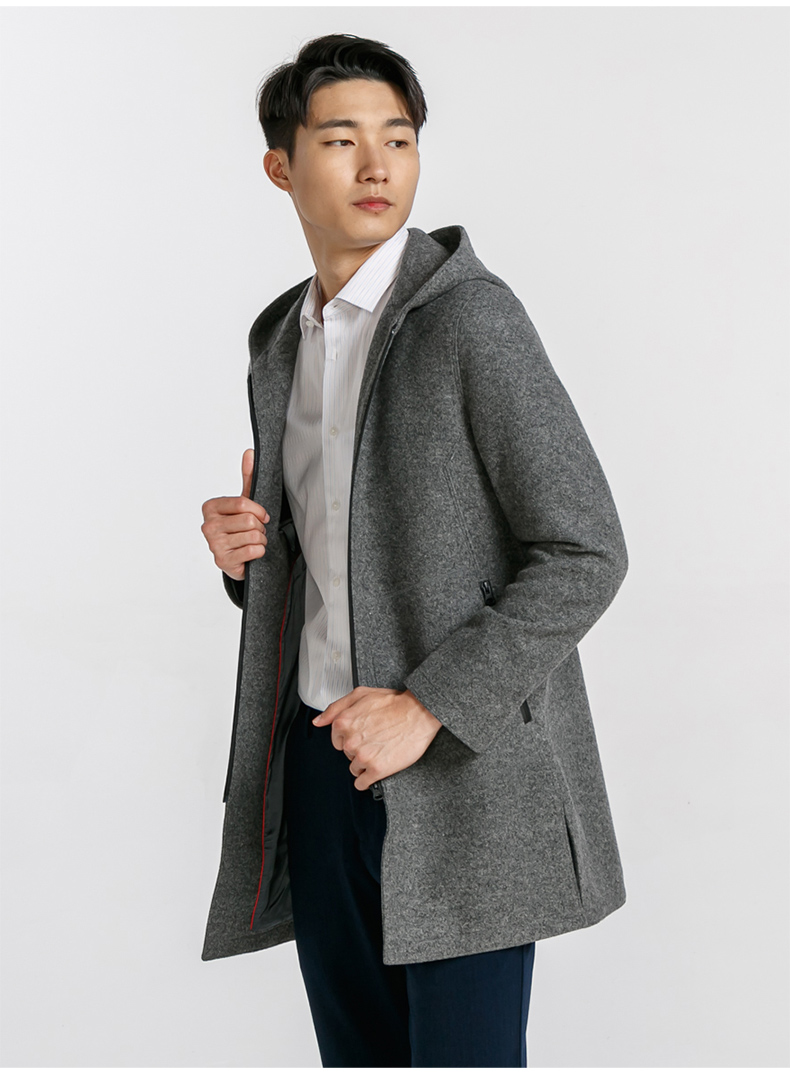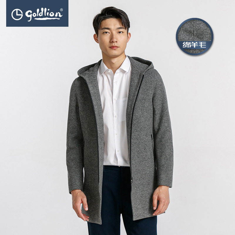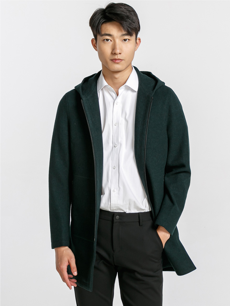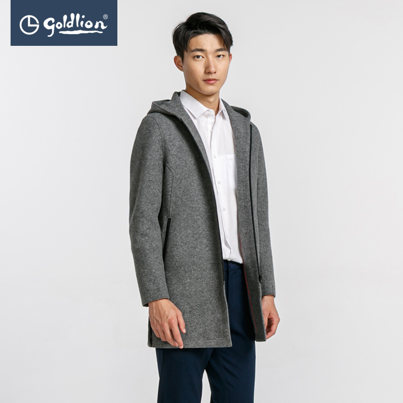 Демисезонное шерстяное утепленное пальто с капюшоном для отдыха