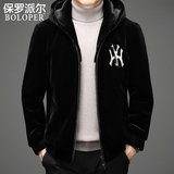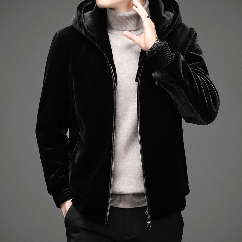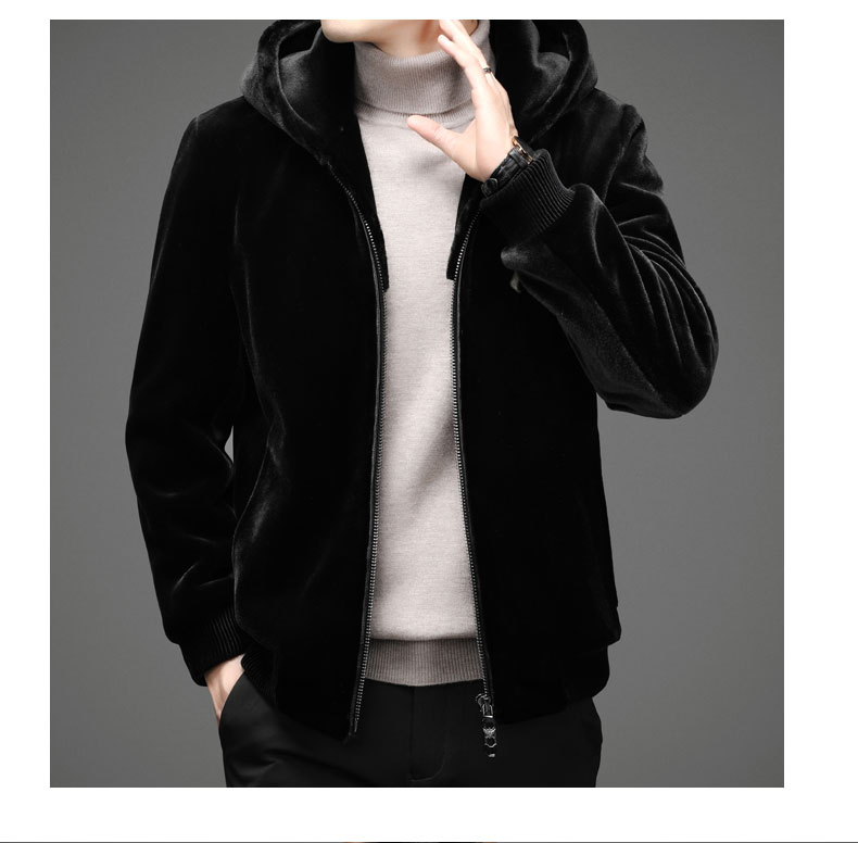 Зимняя бархатная мужская куртка, короткая удерживающая тепло толстовка с капюшоном