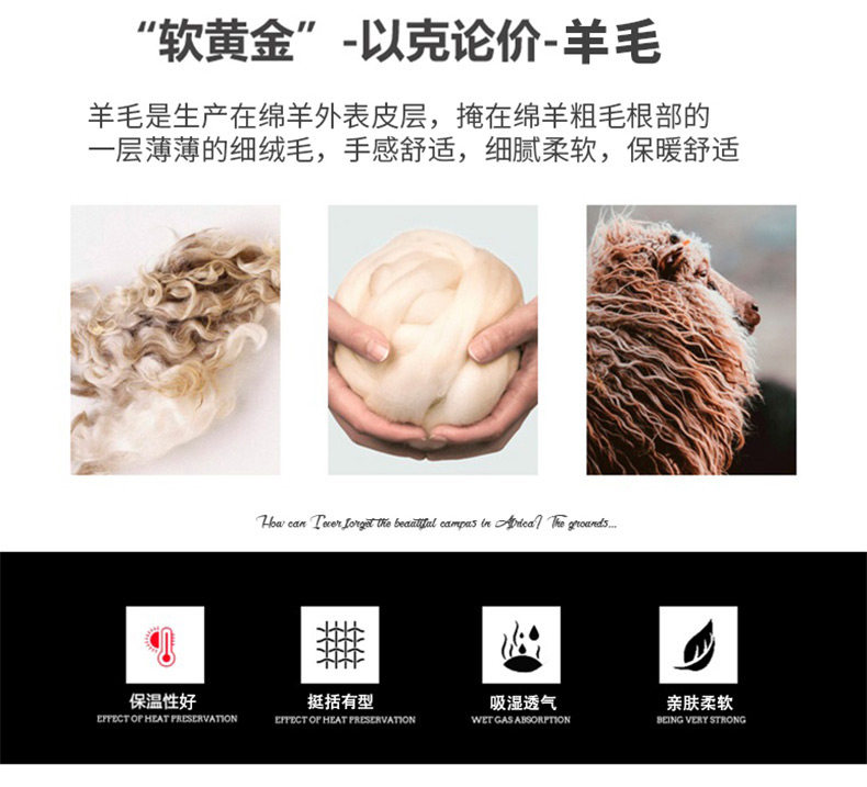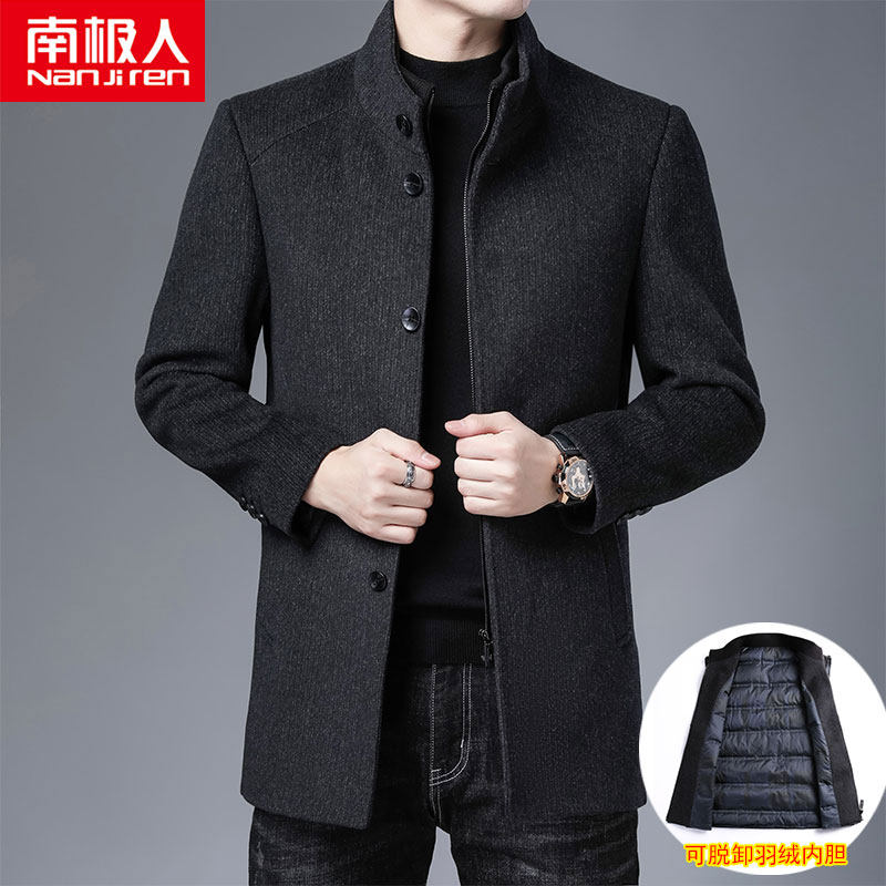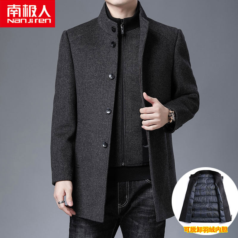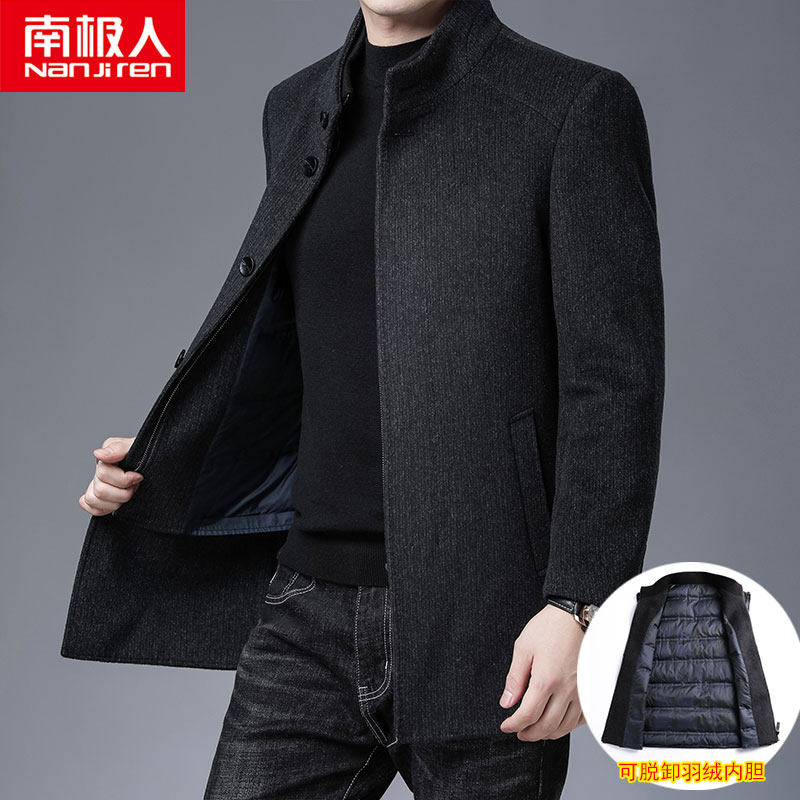 南极人 Шерстяное демисезонное шерстяное пальто, плащ с пухом, увеличенная толщина