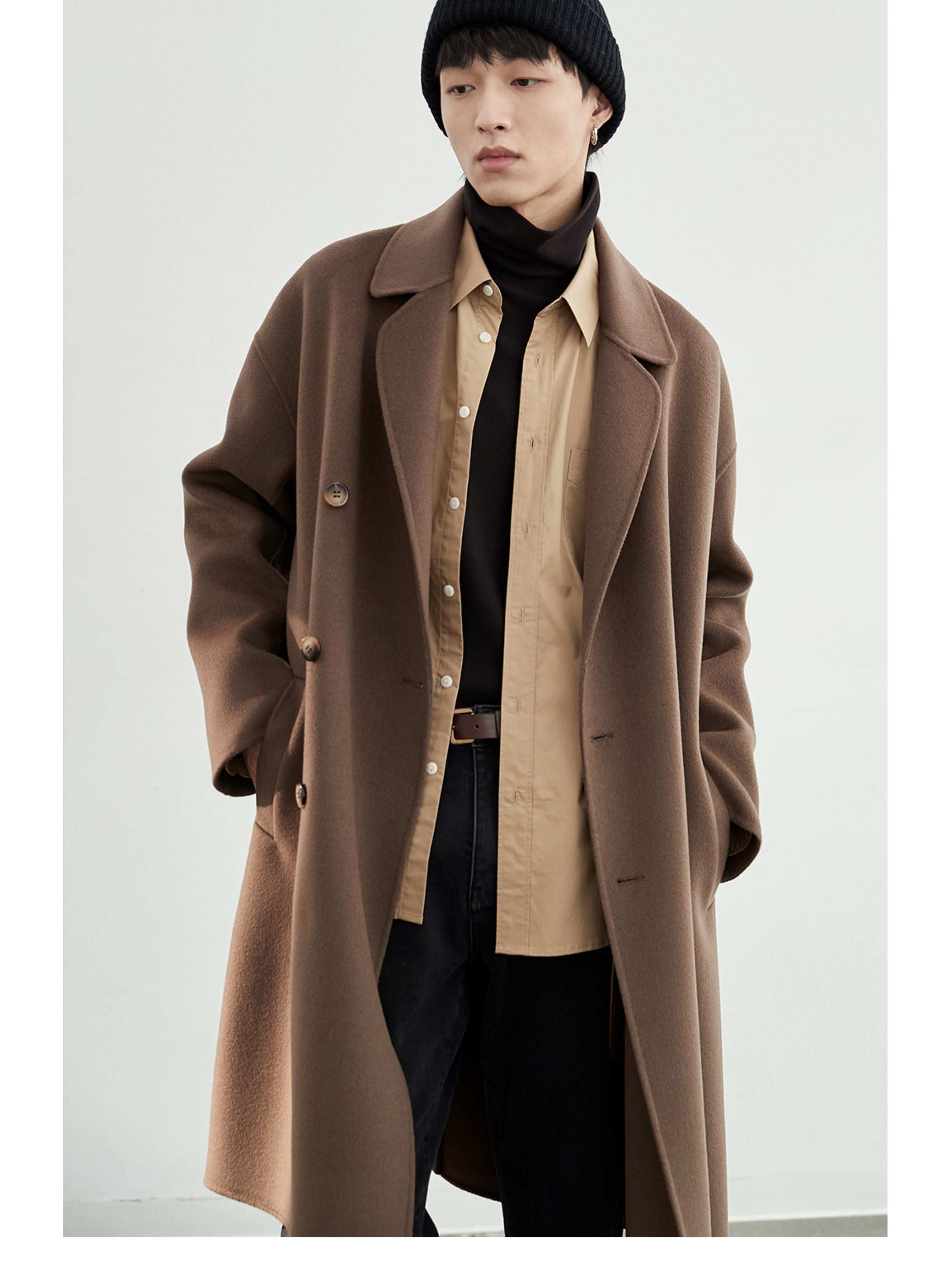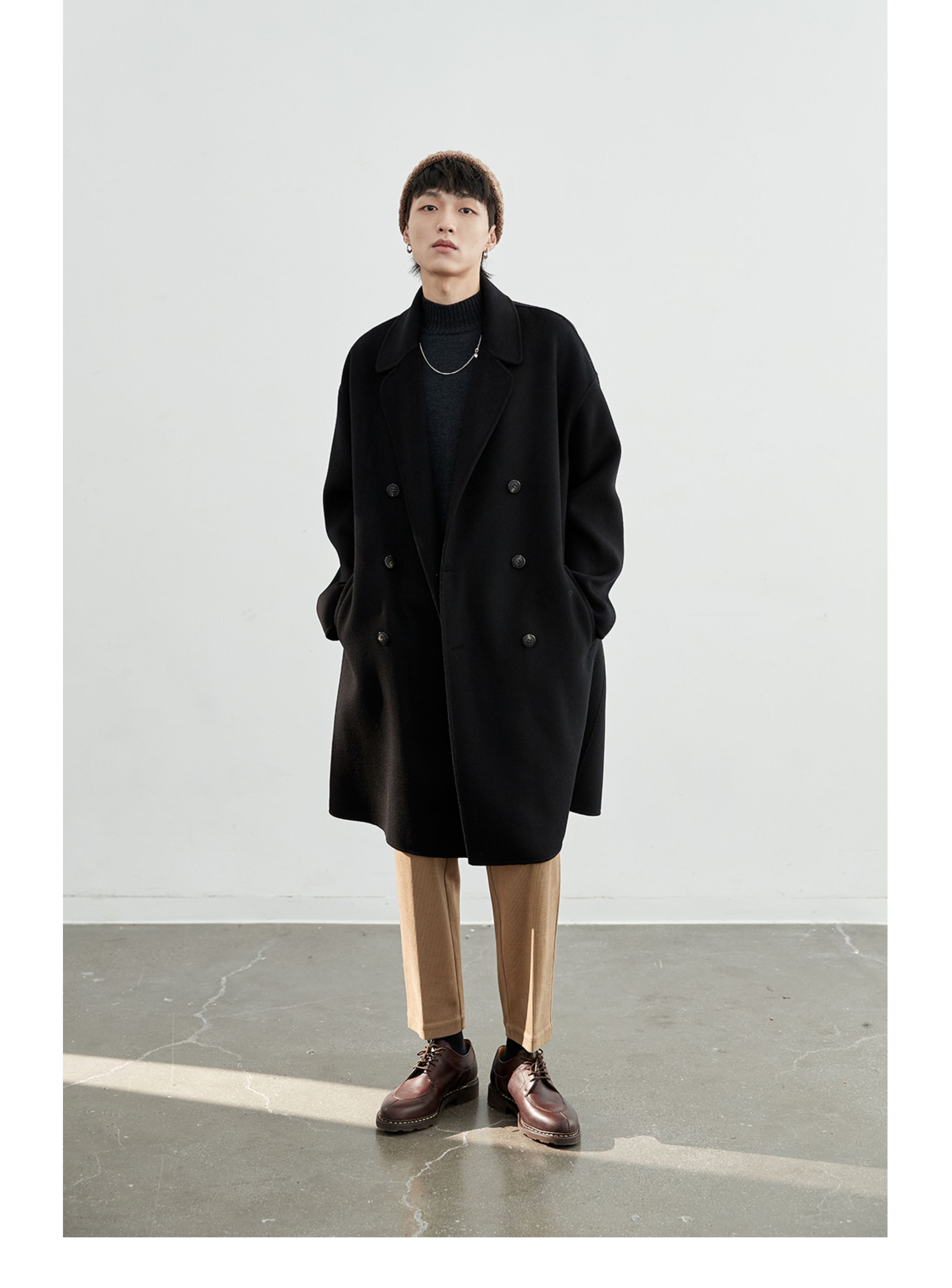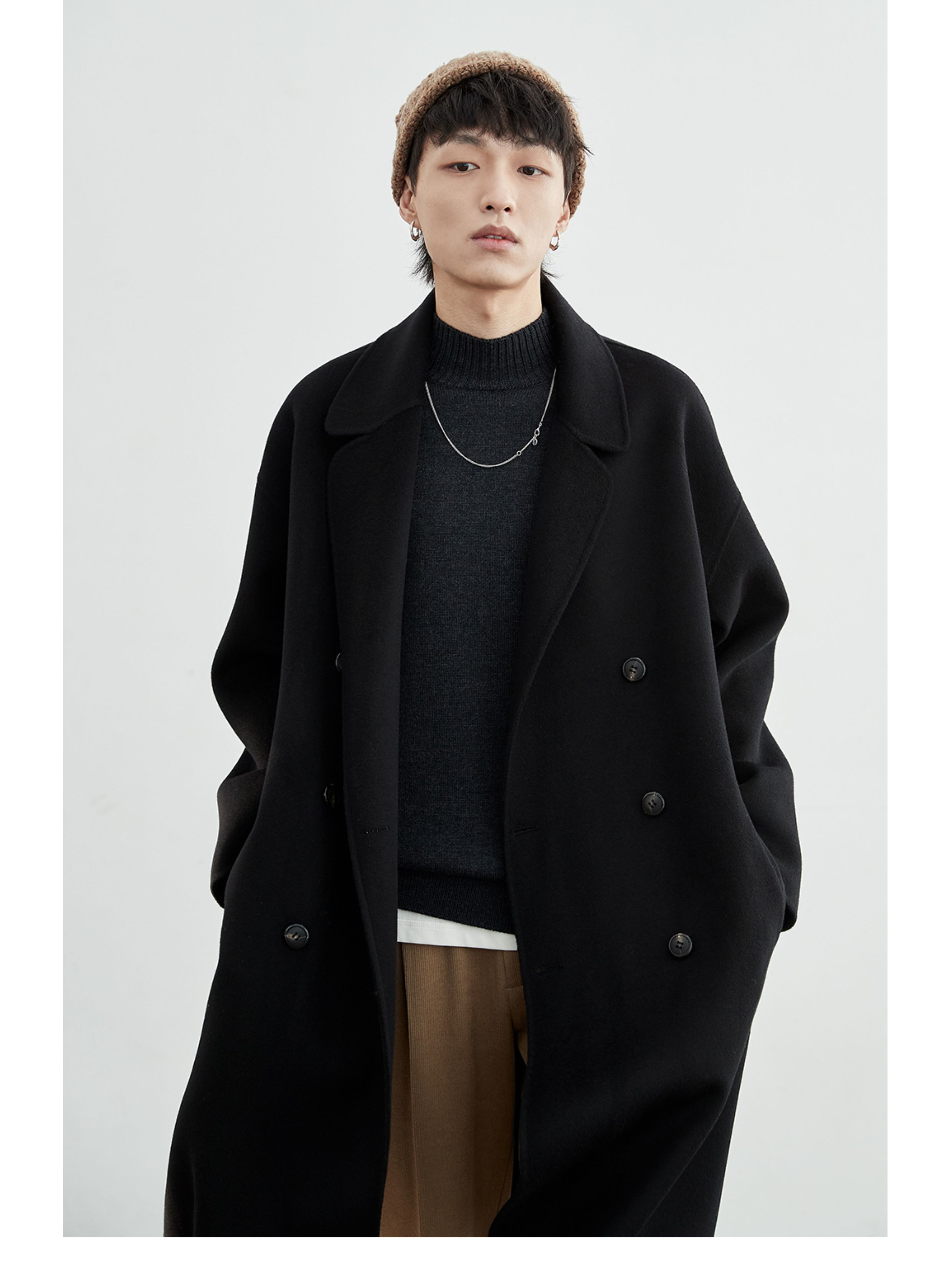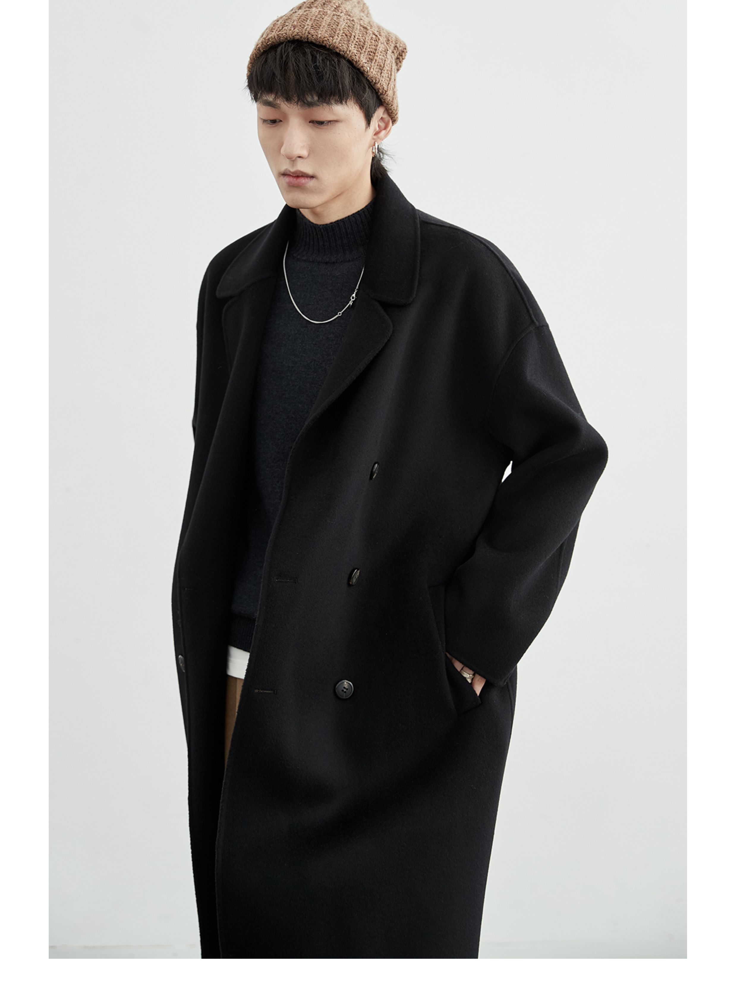 NANS, классическое длинное шерстяное двусторонное шерстяное пальто