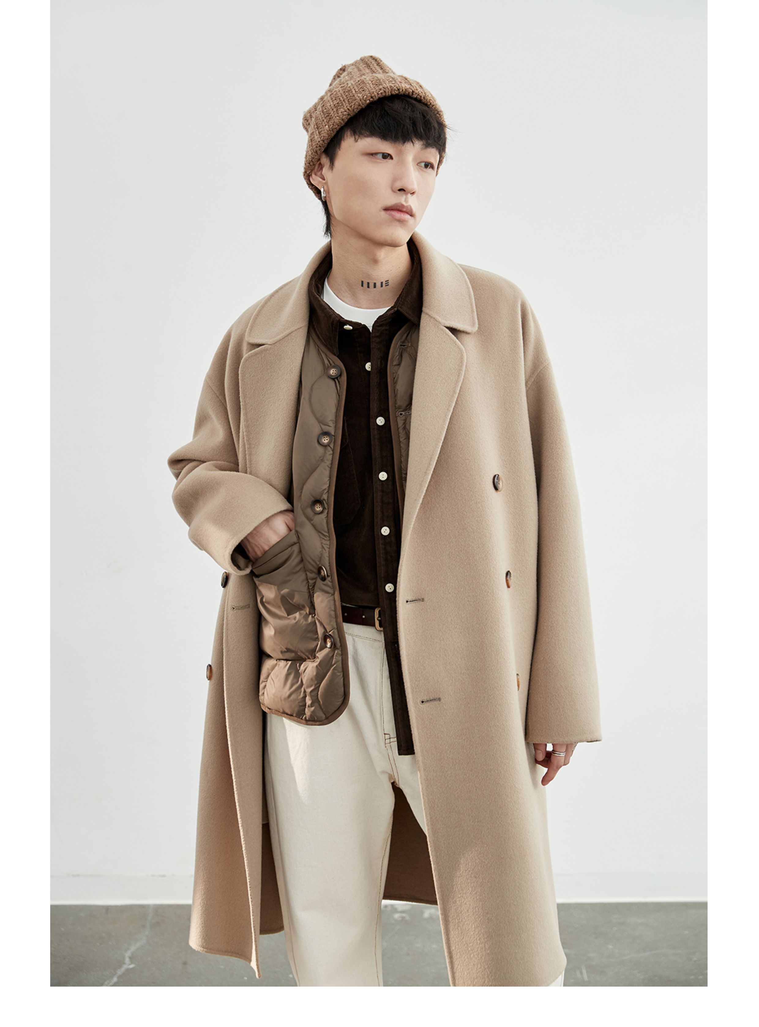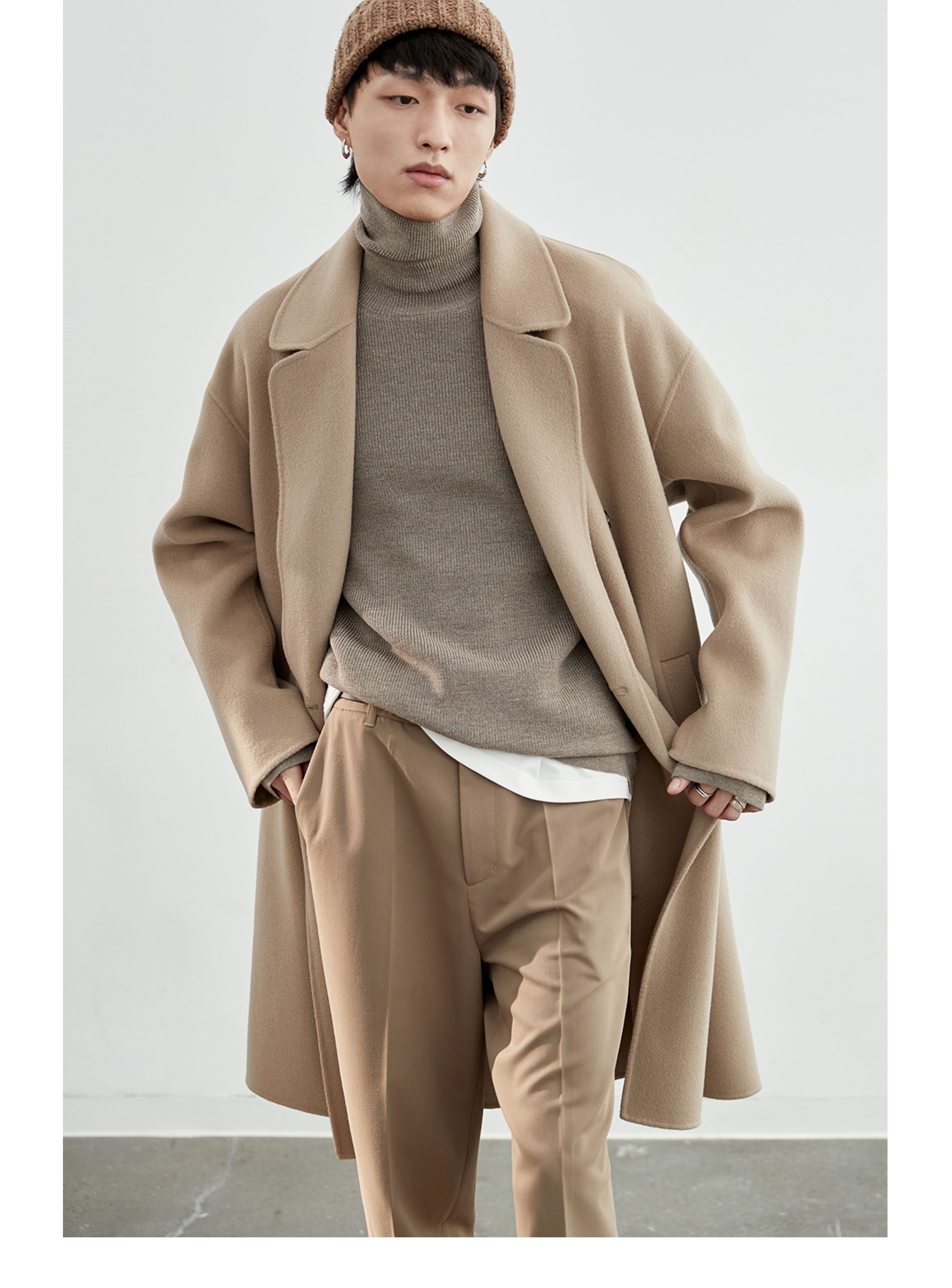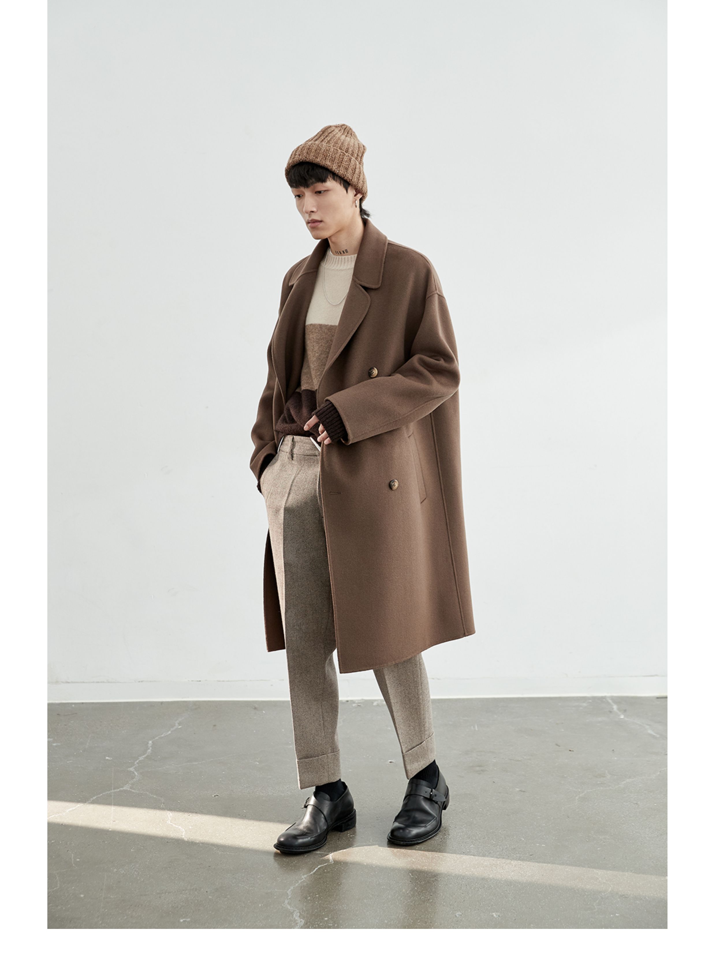 NANS, классическое длинное шерстяное двусторонное шерстяное пальто