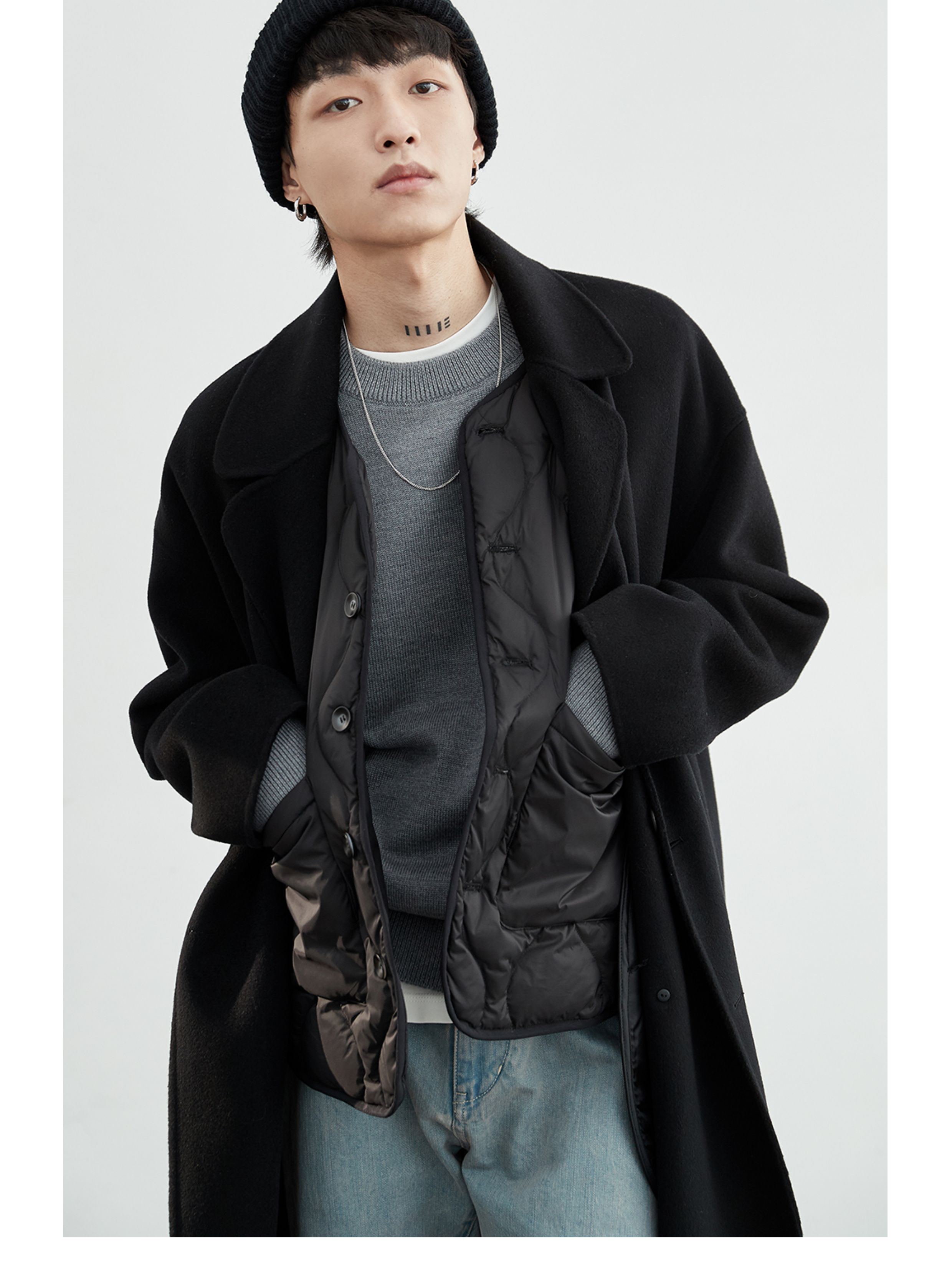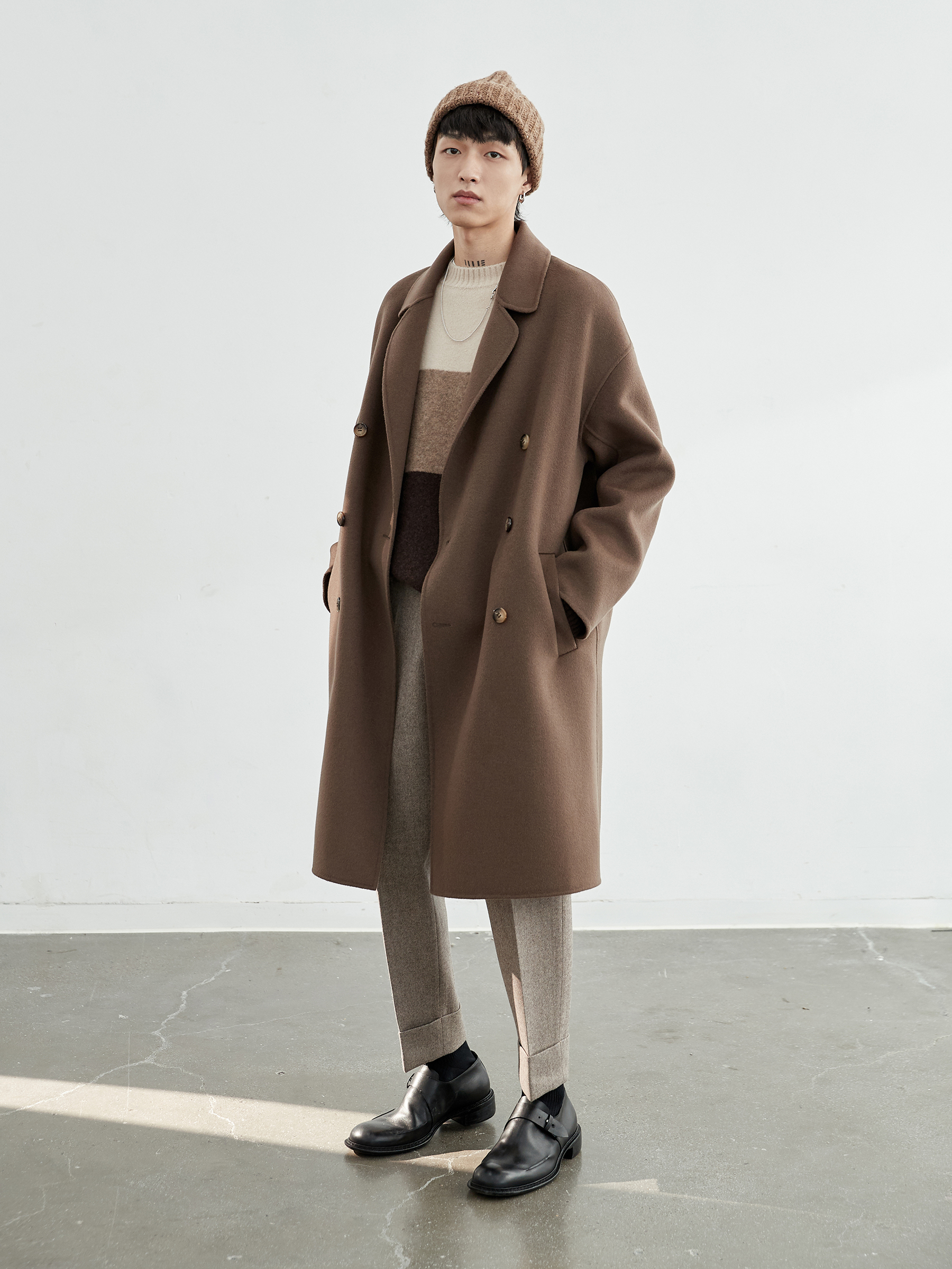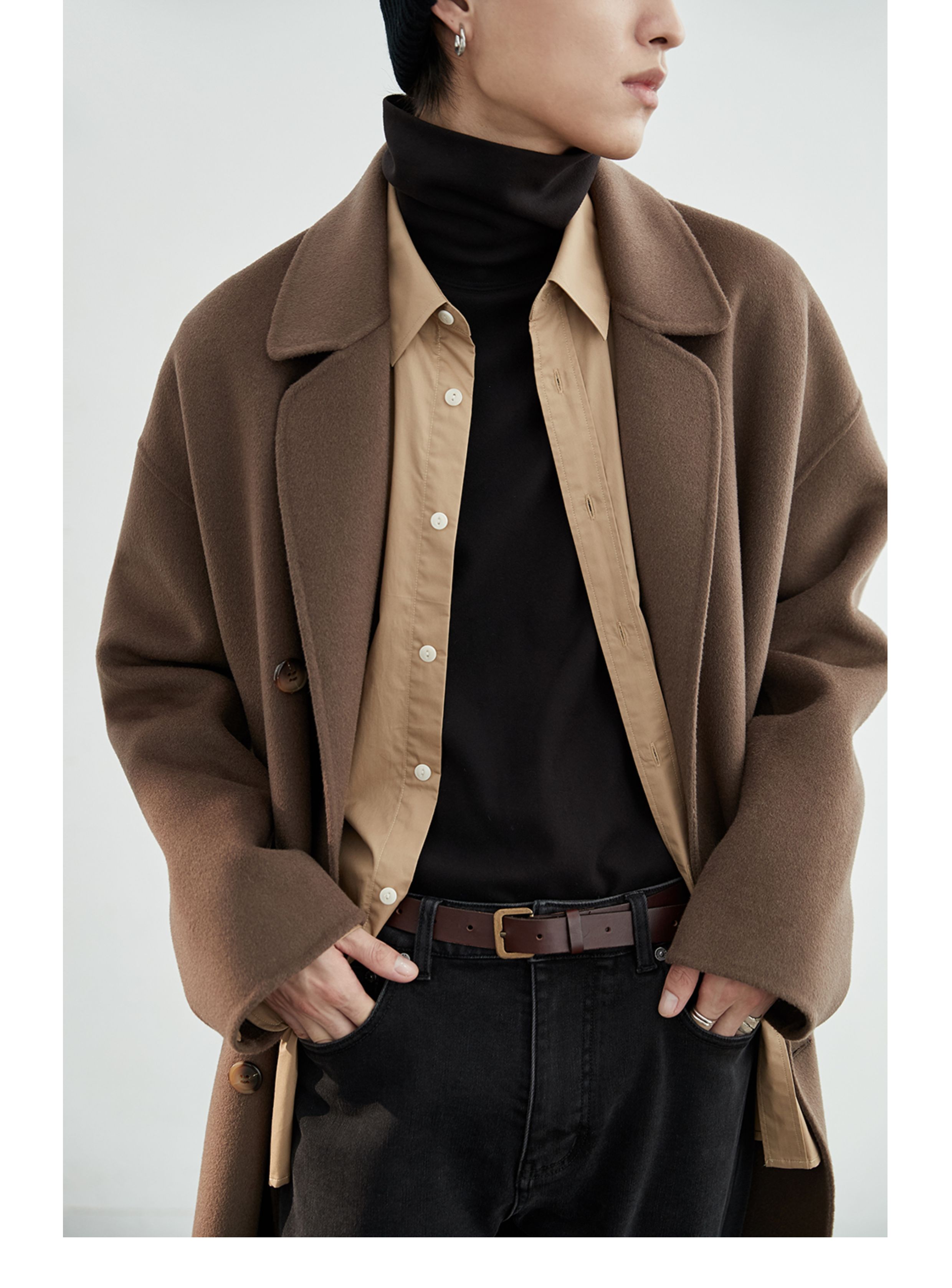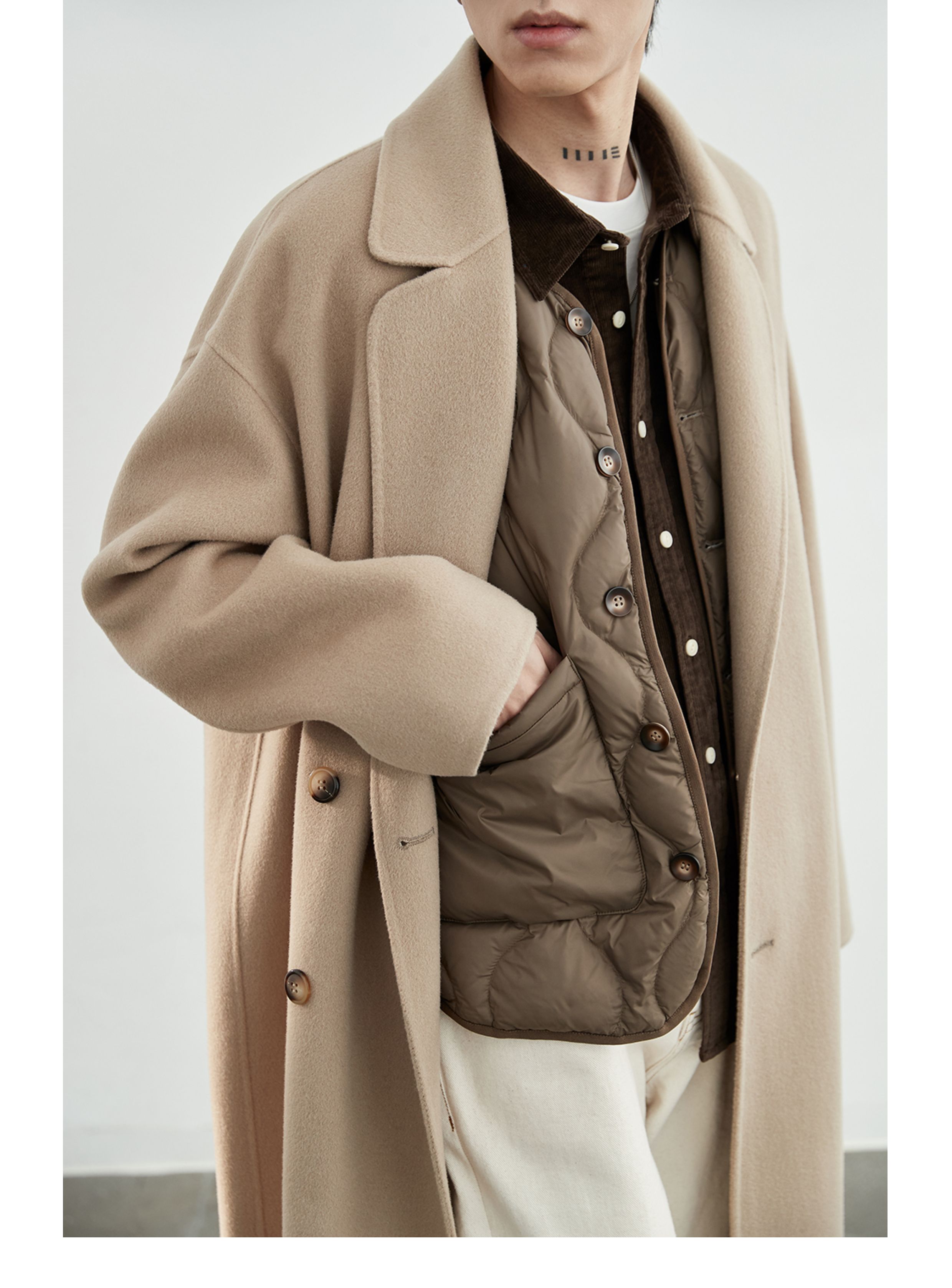 NANS, классическое длинное шерстяное двусторонное шерстяное пальто