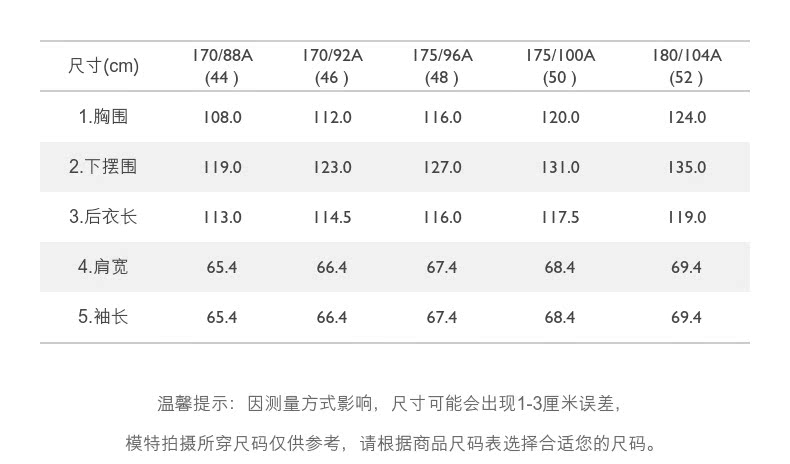 Размер 175/96а составляет 116 см; модель высотой 186 см и носит размер 175/96а