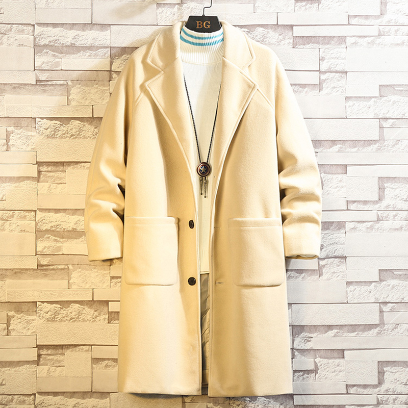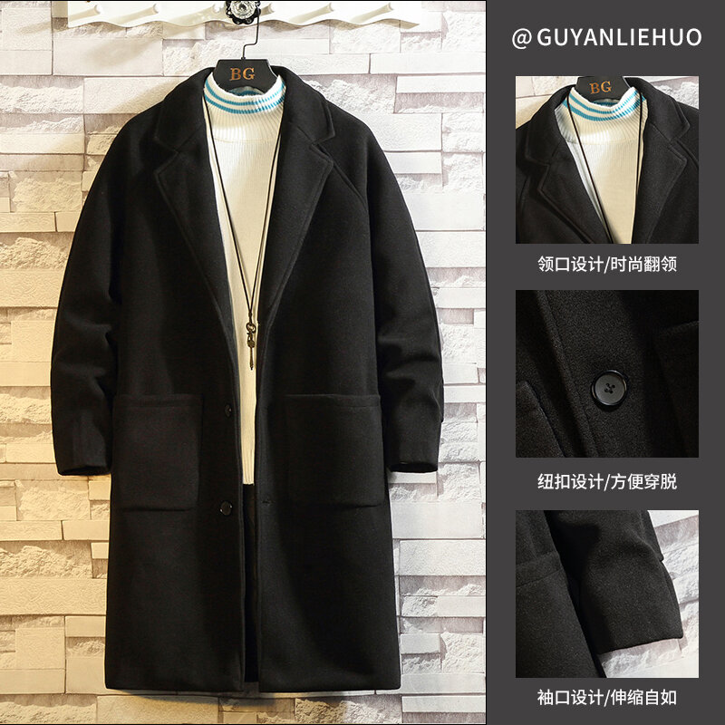 Зимнее длинное шерстяное пальто, трендовый плащ, средней длины, увеличенная толщина, подходит для подростков, большой размер