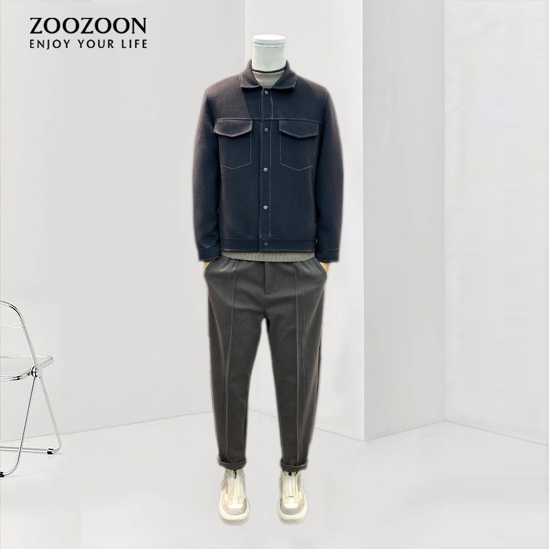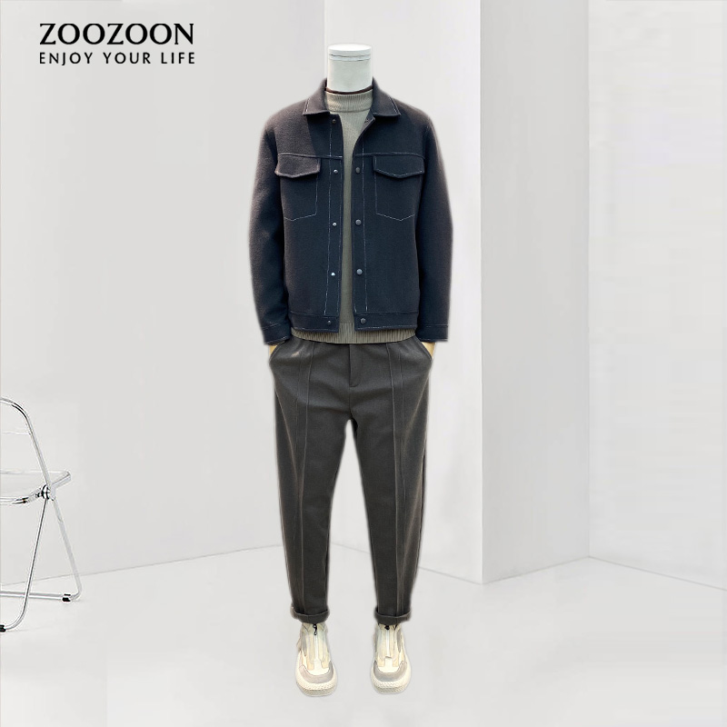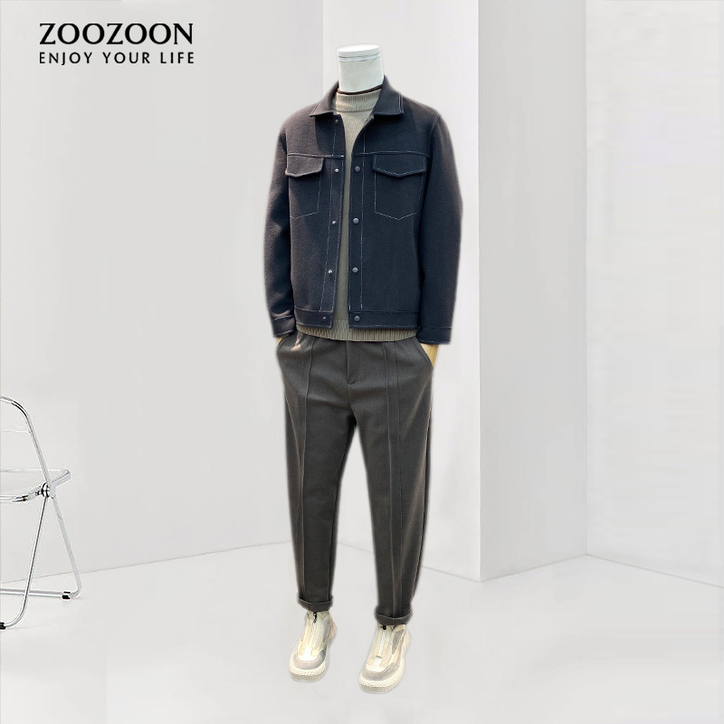 Двусторонная демисезонная трендовая куртка, шерстяной короткий свитер, демисезонное шерстяное пальто, в корейском стиле