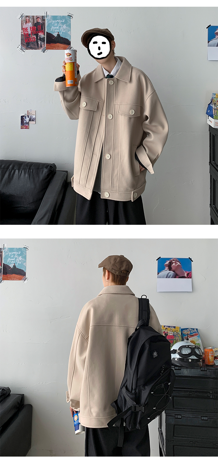 Ретро шерстяное пальто, трендовый плащ, оверсайз