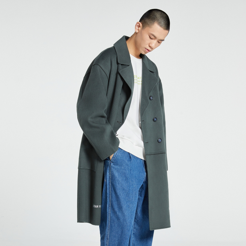 Длинное модное трендовое шерстяное шерстяное пальто, с вышивкой