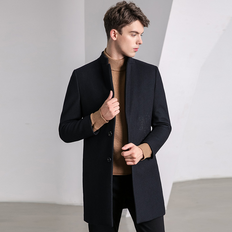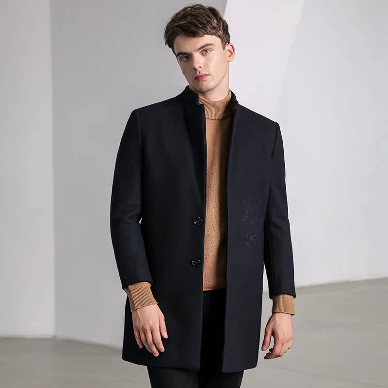 Демисезонное черное длинное шерстяное шерстяное пальто для мальчиков, трендовая куртка, 2020, с вышивкой