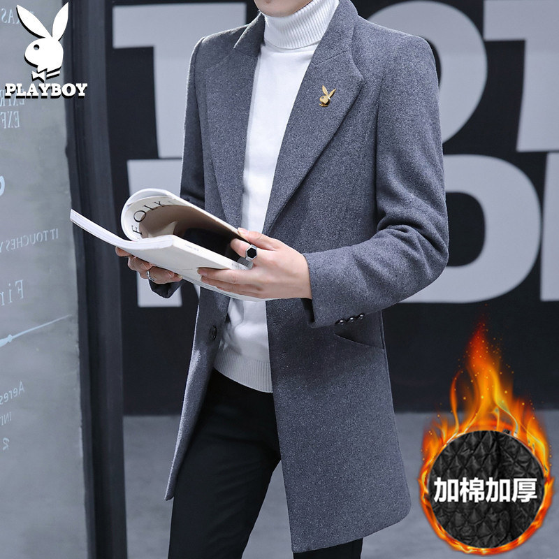 Playboy, шерстяное шерстяное пальто, демисезонная длинная утепленный лонгслив, куртка, средней длины