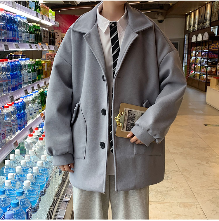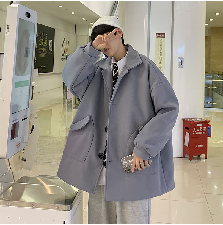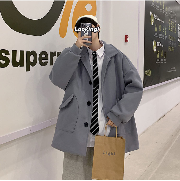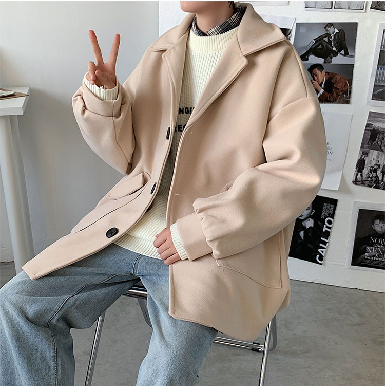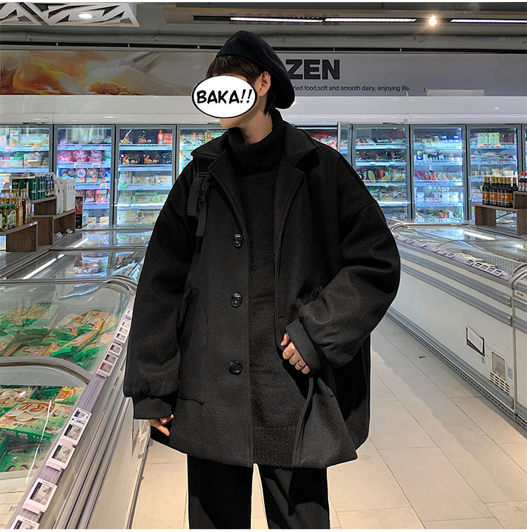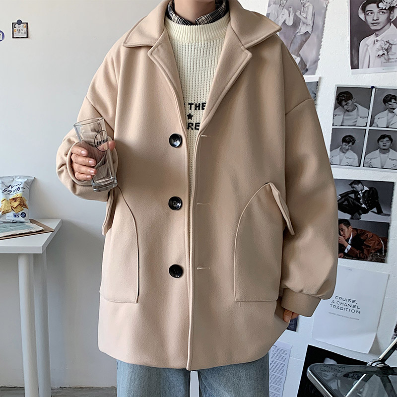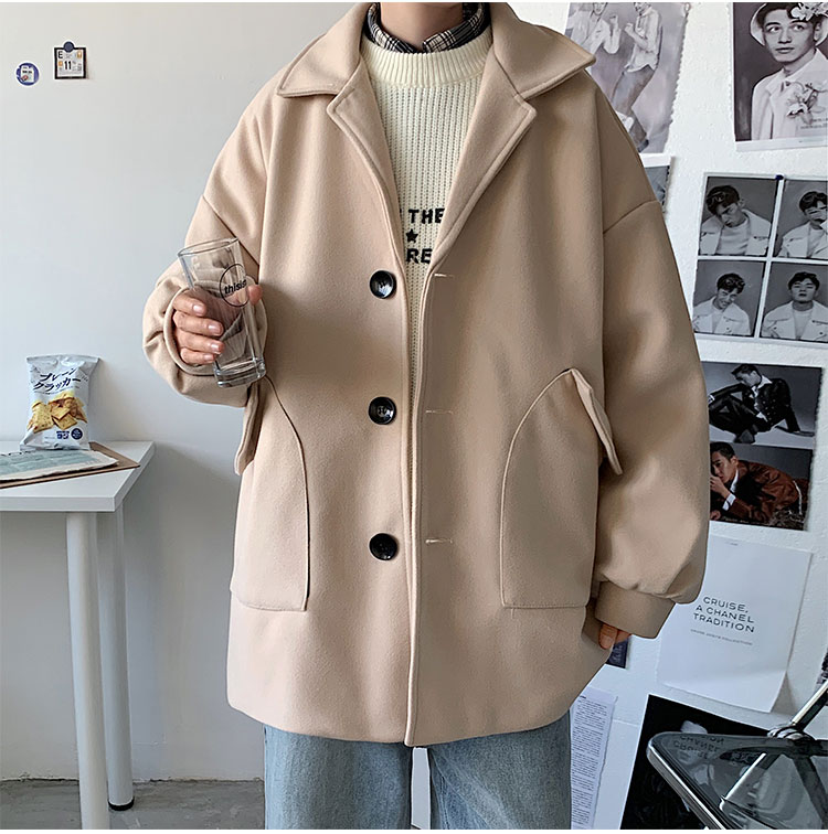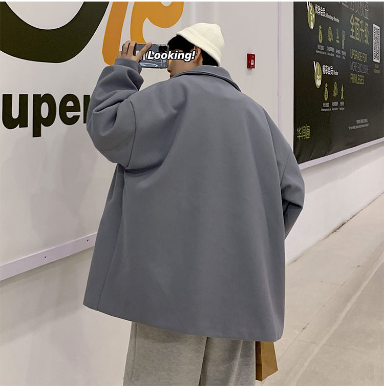 Демисезонное короткое трендовое шерстяное пальто, костюм, плащ, оверсайз, в корейском стиле