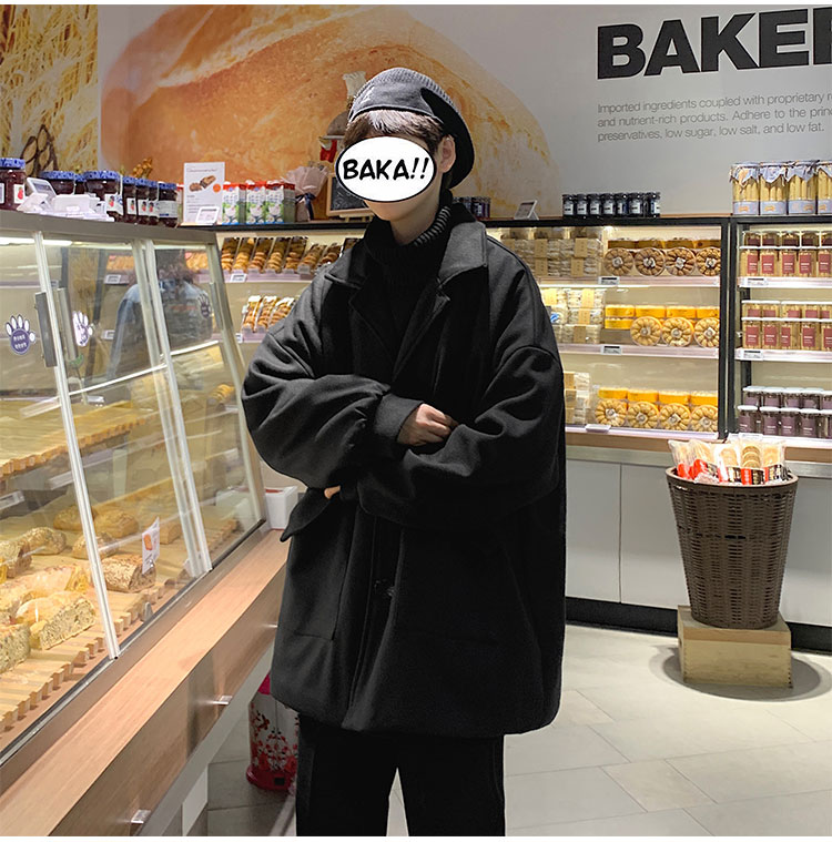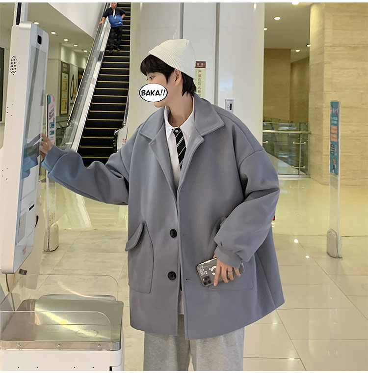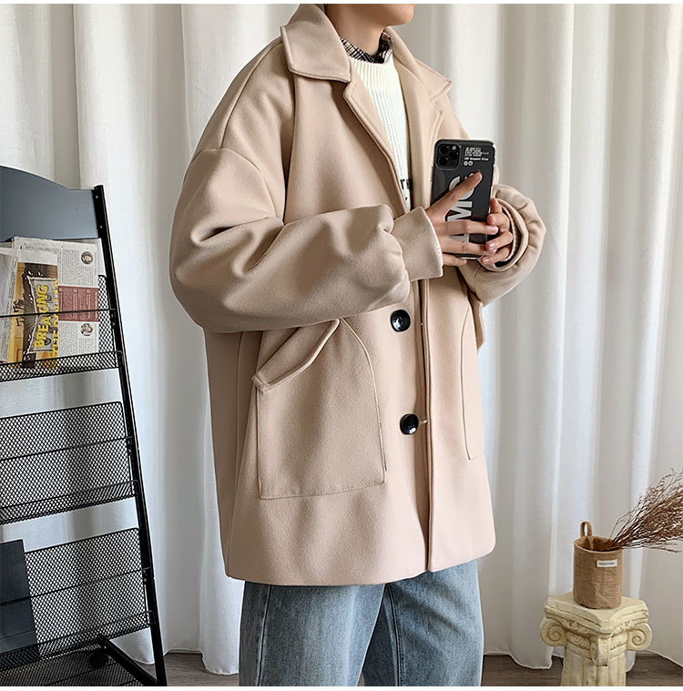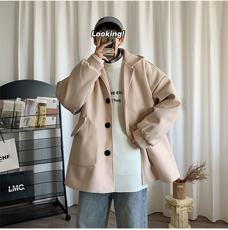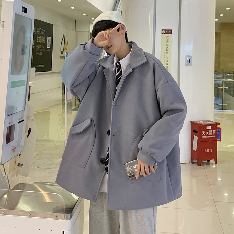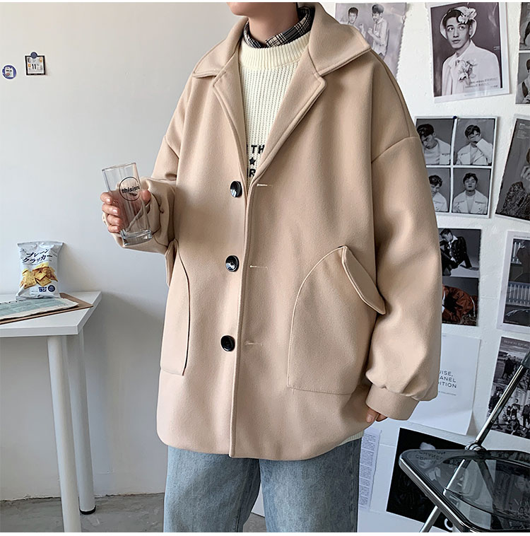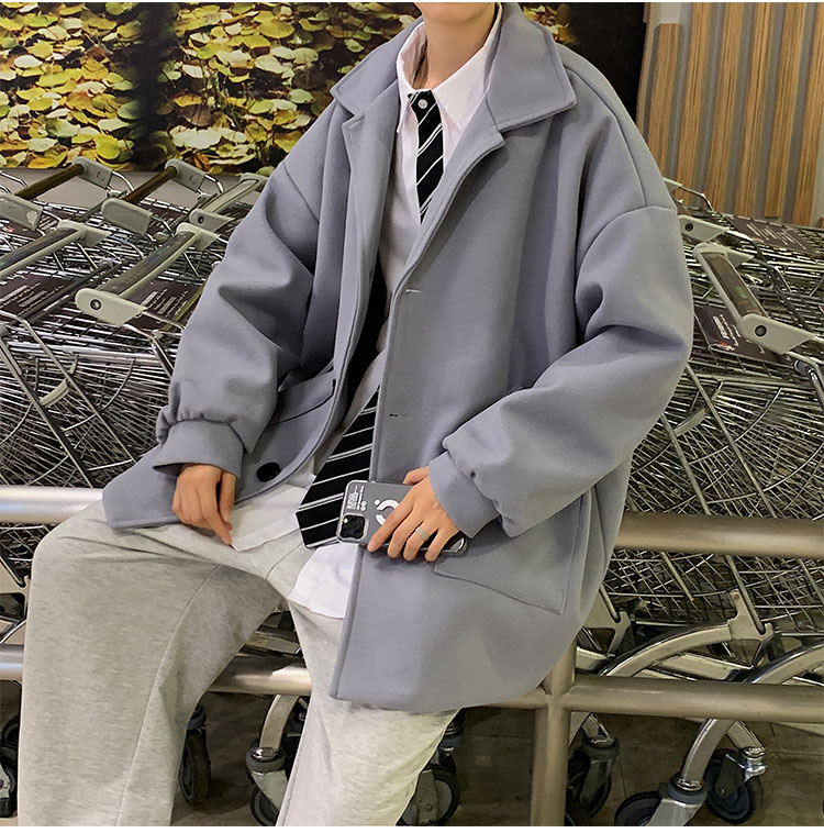 Демисезонное короткое трендовое шерстяное пальто, костюм, плащ, оверсайз, в корейском стиле
